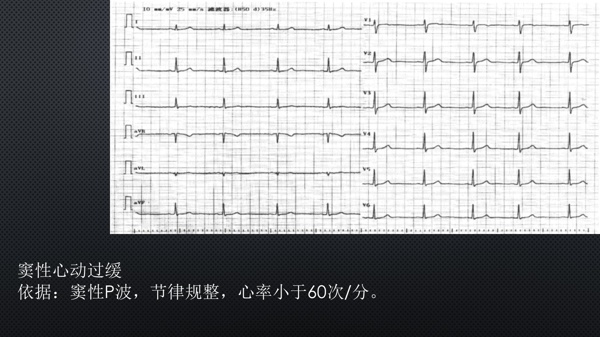 心电图解读摘要:1窦性心动过缓:窦性P波规整心率100次分。2房性期前收缩:提前出现变异P’波QRS波不变形代偿间歇不完全。室性期前收缩:提前出现宽大畸形QRS波前无窦性P波。3完全右束支传导阻滞:QRS波时限012sV1V2呈rsR’或M形IV5V6S波增宽。完全左束支传导阻滞:QRS波时限012sV1V2呈rS或QS波R波增宽电轴左偏。4异位心律包括:心房纤颤(P波消失f波不规则)、心房扑动(P波消失F波规整)、心室颤动(QRST消失颤动波)、心室扑动(正弦型扑动波)、阵发性室上性心动过速(RR整齐无P波或逆行P波)、室性心动过速(连续室早QRS畸形)。5传导阻滞:预激综合征(PR缩短QRS增宽)、一度(PR020s)、二度一型(PR渐长至脱漏)、二度二型(PR恒定部分QRS脱漏)、三度(P与QRS无固定关系)。6急性心肌梗死:前壁高侧壁(V1V4ST弓背抬高IavL抬高)、广泛前壁(V1V4QS波ST弓背抬高)。