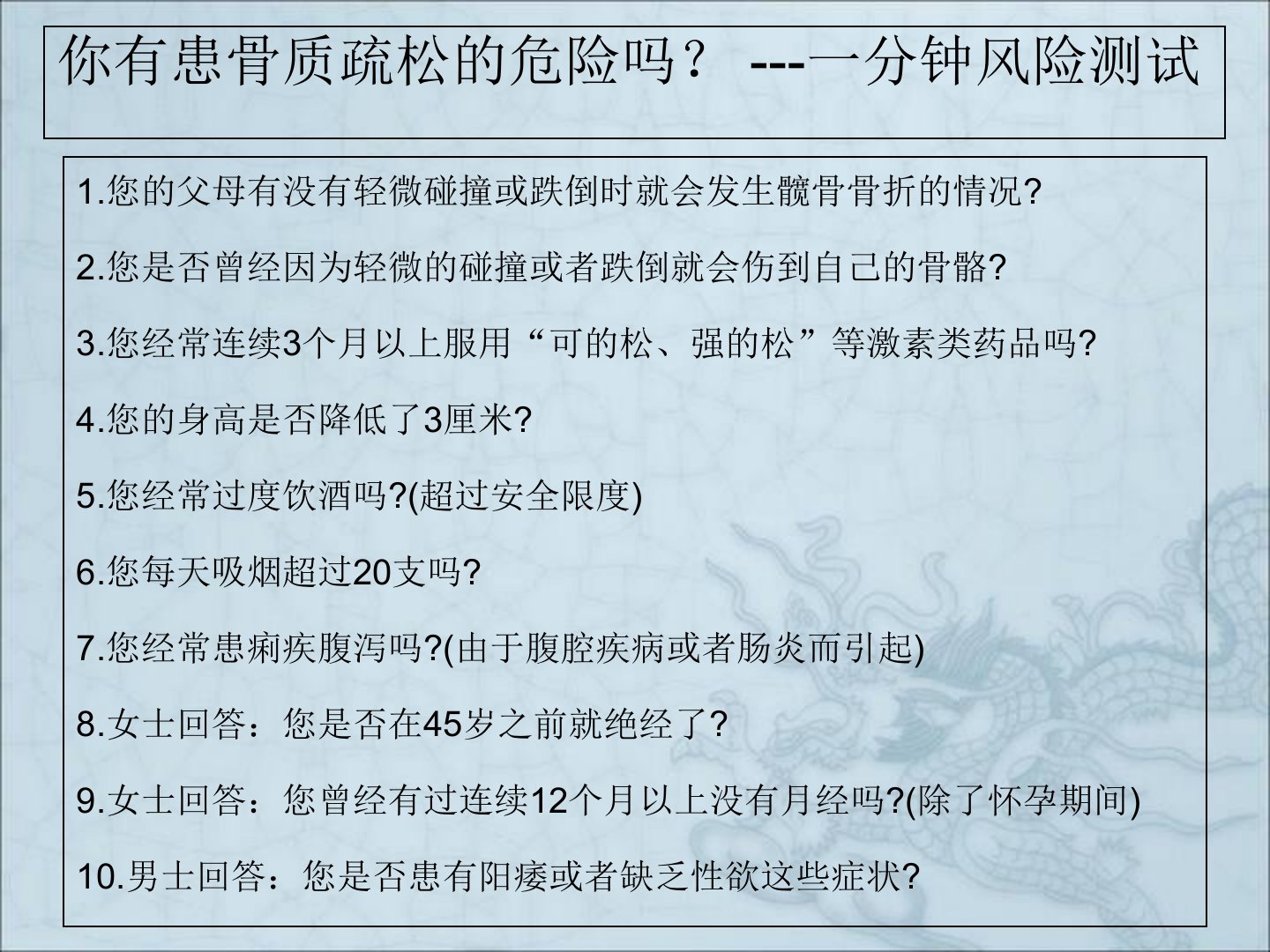 骨质疏松症是以骨量减少、骨微观结构退化为特征导致骨脆性增加、易骨折的全身性骨骼疾病。一分钟风险测试可判断患骨质疏松症风险但确诊需骨密度测定。骨质疏松症分为原发性、继发性和特发性三类其中原发性最常见。诊断骨质疏松症的通用指标是双能X线吸收仪(DXA)检查部位包括腰椎和股骨近端。骨密度测定中T值用于绝经后妇女和50岁以上男性Z值用于绝经前妇女和50岁以下男性。WHO诊断标准基于白种人数据可能导致黄种人漏诊中国已制定试行诊断标准。诊断时若不同部位结果不一致以最低处为准;发生脆性骨折应直接诊断。骨密度测定临床指征多样儿童和青少年的骨质疏松症诊断需同时存在临床骨折史和低骨矿含量或低骨密度。当前国内多用FRAX工具结合BMD和骨折风险因子评估骨折风险。骨密度测量辐射微小安全可靠。
