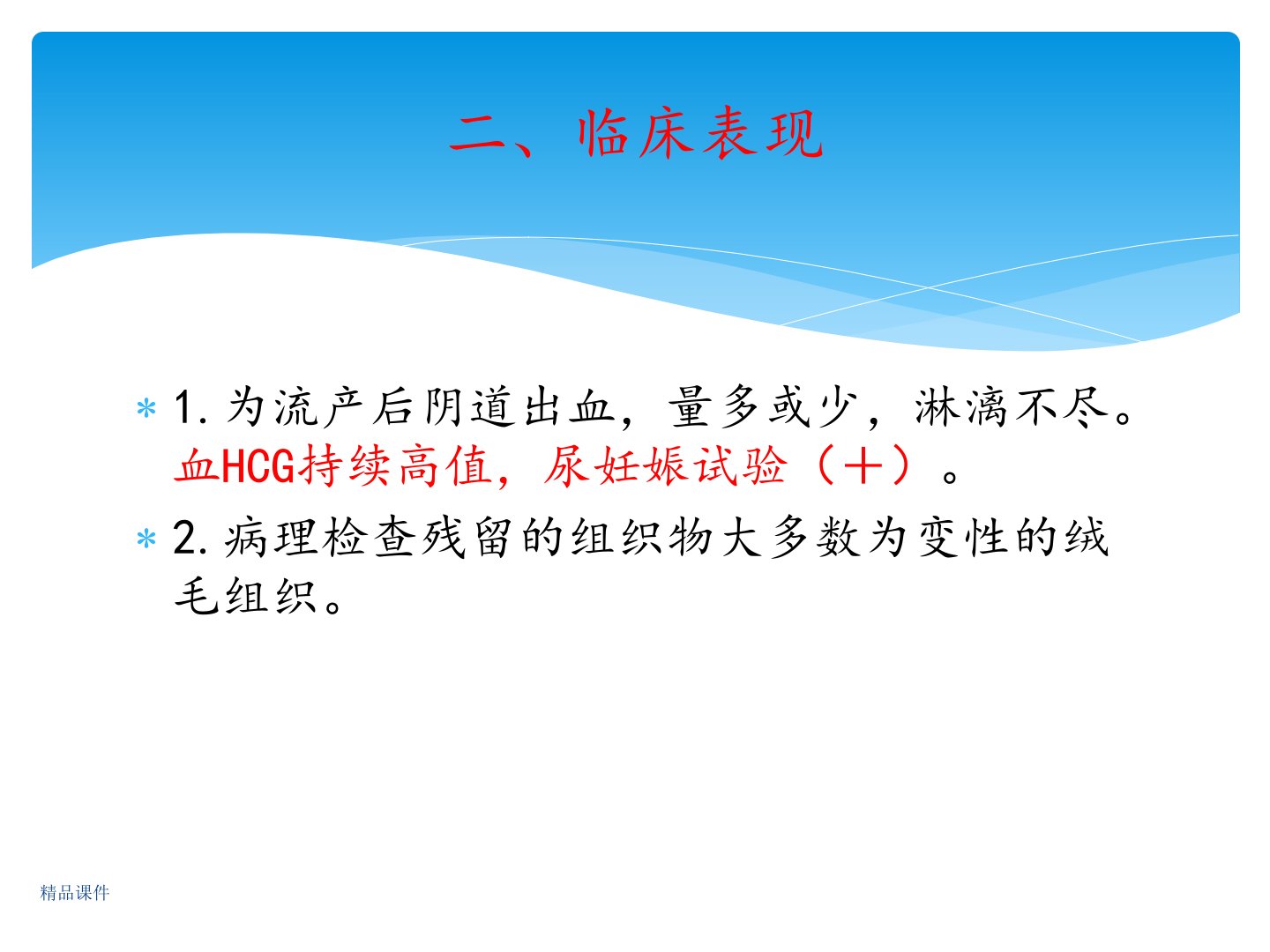 《宫腔残留的超声诊断》摘要本文由超声科罗婷婷于2017年8月制作聚焦宫腔残留的超声诊断。宫腔残留指早期妊娠行人工手术流产或药物流产及中期妊娠行引产后妊娠组织排出不全致宫腔内残留临床表现为流产后阴道出血、血HCG持续高值病理多为变性绒毛组织。超声表现上二维超声可见宫腔线模糊或不连续有不规则中高回声团;彩超可见局灶性丰富血流信号及低阻动脉血流频谱。其声像图无明显特异性随病程变化而不同。临床经验方面超声检查要结合病史及临床情况综合分析清宫半个月后血HCG会下降但清宫后一个月残留物机化后HCG值可能降至正常。人流清宫干净与否与患者子宫收缩情况、孕囊大小、医生操作手法、后期休息有关。诊断注意事项包括确定宫内残留后排查位置未见明显残留物声像仍要上彩色血流图。鉴别诊断需与恶性滋养细胞疾病葡萄胎、子宫内膜息肉等区分。