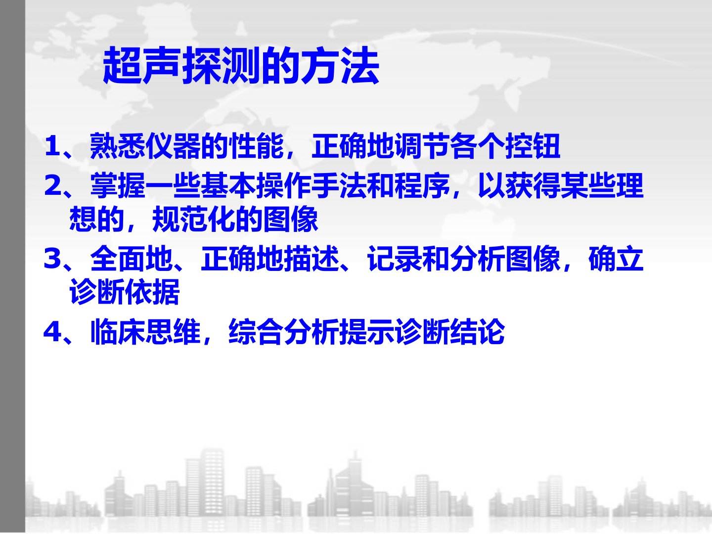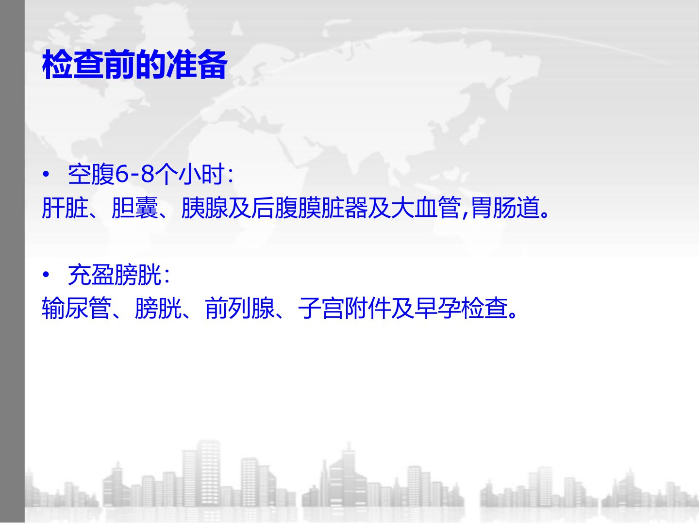 作为医生在进行腹部超声诊断前需确保患者做好准备:如肝脏等部位检查需空腹68小时输尿管等检查则需充盈膀胱。检查时医生要熟悉仪器性能掌握操作手法全面描述记录分析图像综合临床思维确立诊断。探测方式有直接和间接探测法途径包括体表、腔内和术中超声。扫查切面有矢状面、横向、斜向和冠状面扫查患者可采取多种体位。肝脏呈楔形位于右上腹借助“H”形沟分为左右叶等肝脏疾病包括弥漫性和局灶性病变。胆囊疾病方面急性胆囊炎胆囊增大壁增厚墨菲征阳性多伴结石;胆囊结石典型声像图为囊内强回声团伴声影;胆囊息肉和胆囊癌也有特定表现。胰腺分四部分胰腺疾病包括水肿型、急性、慢性胰腺炎及胰腺癌。胃肠道疾病诊断传统上依赖X线及胃镜肠镜但口服胃超声造影像剂可改善观察效果。超声诊断简便无痛苦但无法区分慢性胃炎病理类型也不能取组织做病理检查。