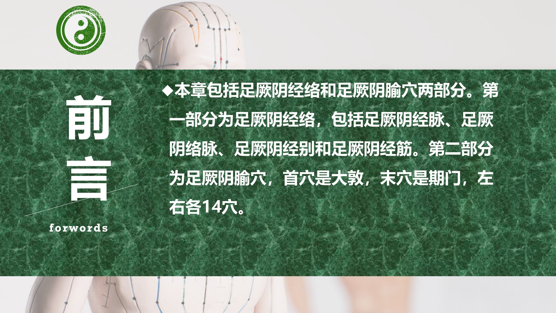 《足厥阴经络与腧穴》摘要本章涵盖足厥阴经络与腧穴。足厥阴经络部分:1经脉:循行起于大趾丛毛经足背、内踝等入毛中、环阴器至小腹挟胃属肝络胆上贯膈布胁肋循喉咙入颃颡连目系上额与督脉会于巅有支脉分布。病候包括腰痛、丈夫疝、妇人少腹肿等主肝所生病如胸满、呕逆等。2络脉:别名为蠡沟去内踝五寸别走少阳病候有睾肿卒疝等。3经别:于跗上分出上至毛际合于少阳。4经筋:起于大指之上结于内踝等病候有足大指支内踝前痛等。足厥阴腧穴部分:一侧14穴12穴在下肢内侧2穴在腹、胸部。各穴有穴名释义、定位、主治、操作及古文献摘录。如大敦可治疝气、小儿惊风等;行间能治疝气、目赤肿痛等。小结指出经脉循行特点、联系脏腑器官以及腧穴主治肝胆脾胃病、少腹前阴病、妇科病、神志病等要点。