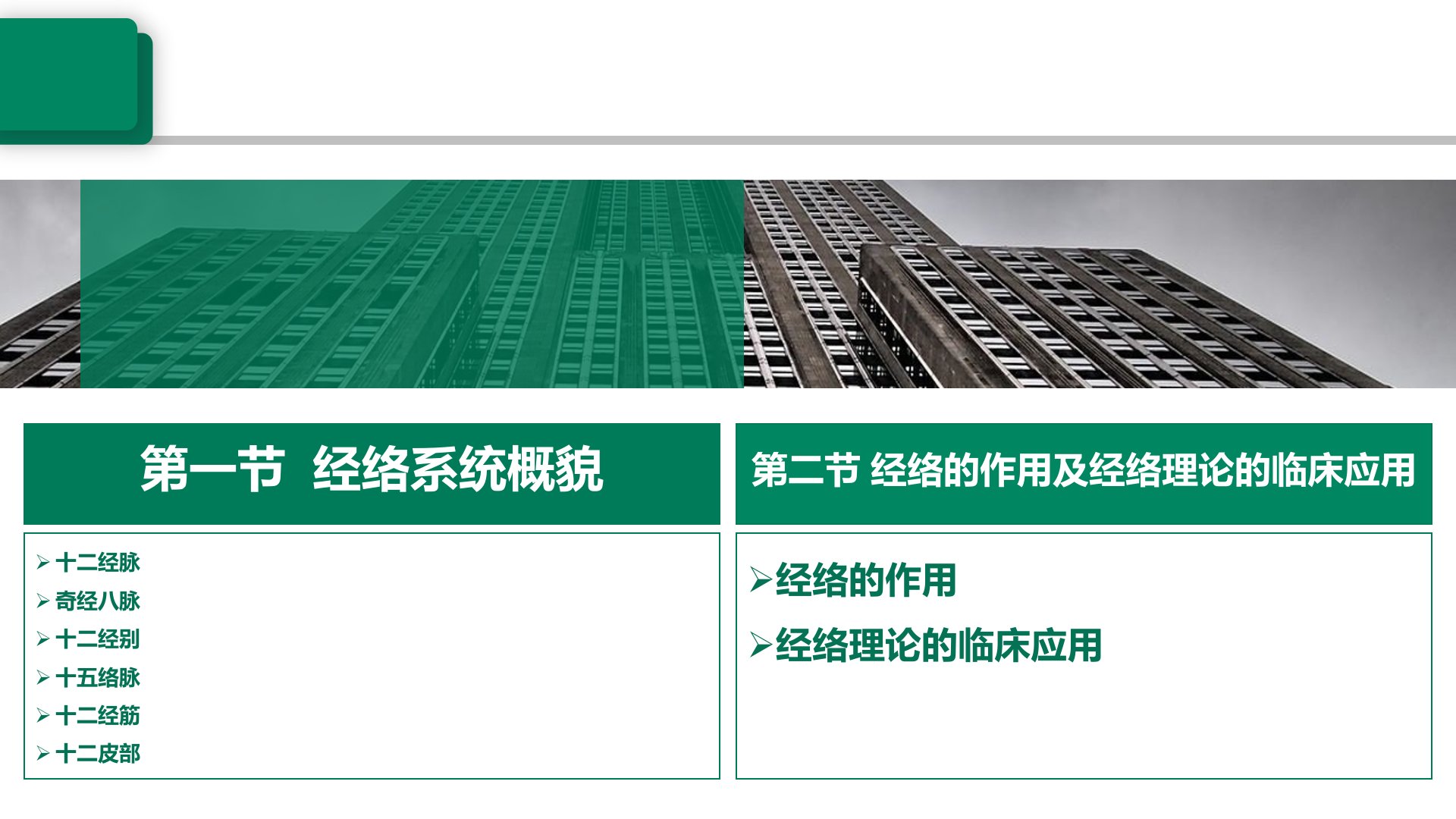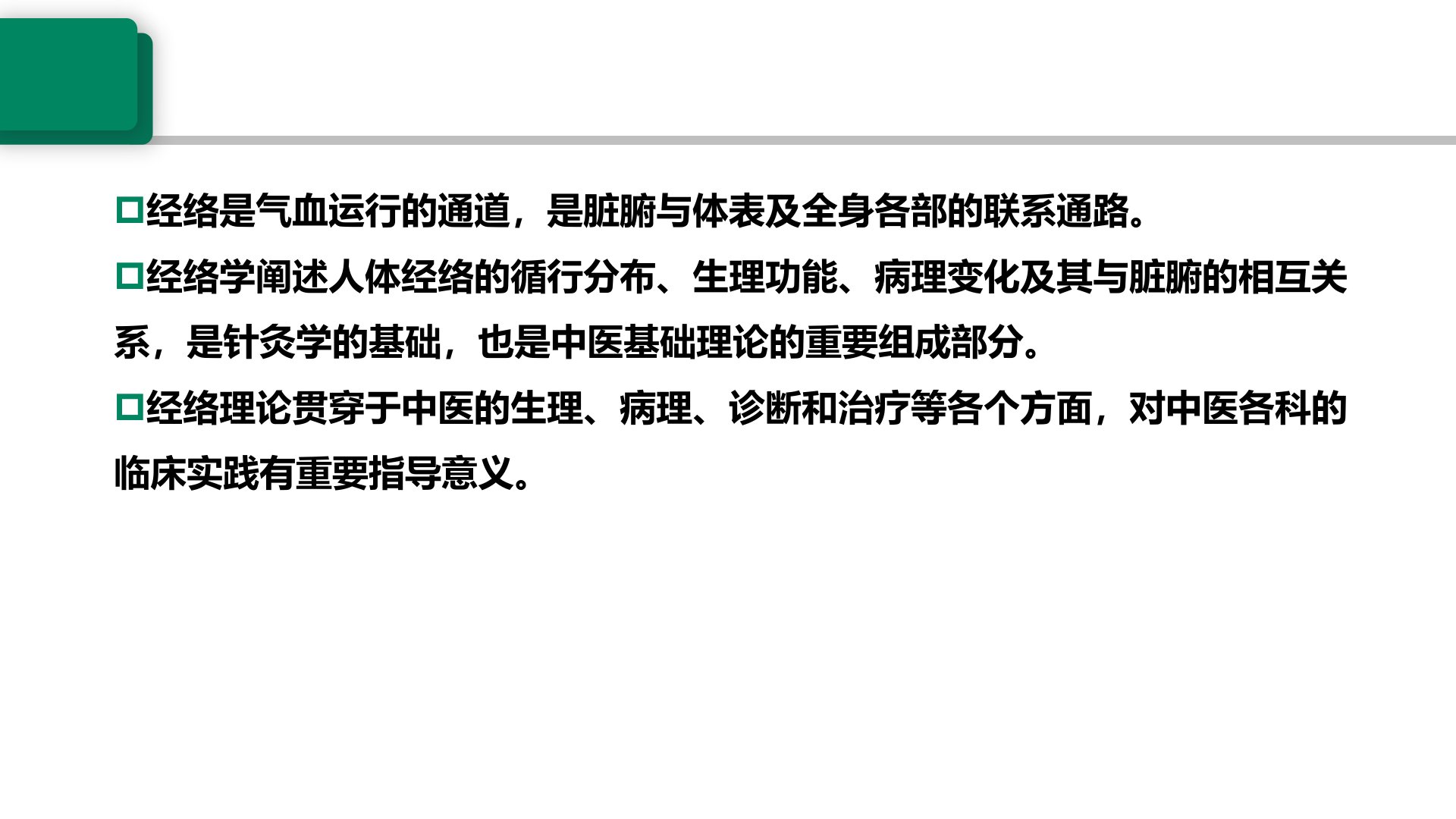 经络概述第一节经络系统概貌十二经脉奇经八脉十二经别十五络脉十二经筋十二皮部第二节经络的作用及经络理论的临床应用经络的作用经络理论的临床应用经络是气血运行的通道,是脏腑与体表及全身各部的联系通路。经络学阐述人体经络的循行分布、生理功能、病理变化及其与脏腑的相互关系,是针灸学的基础,也是中医基础理论的重要组成部分。经络理论贯穿于中医的生理、病理、诊断和治疗等各个方面,对中医各科的临床实践有重要指导意义。经络理论早在《内经》《难经》中就有系统记载。在此之前,则有近年出土的古帛书和古简书所载的“十一脉”等;之后,则有《甲乙经》等书结合腧穴做了全面的论述;近代研究资料也很丰富。经络学说来源于医疗实践,其...