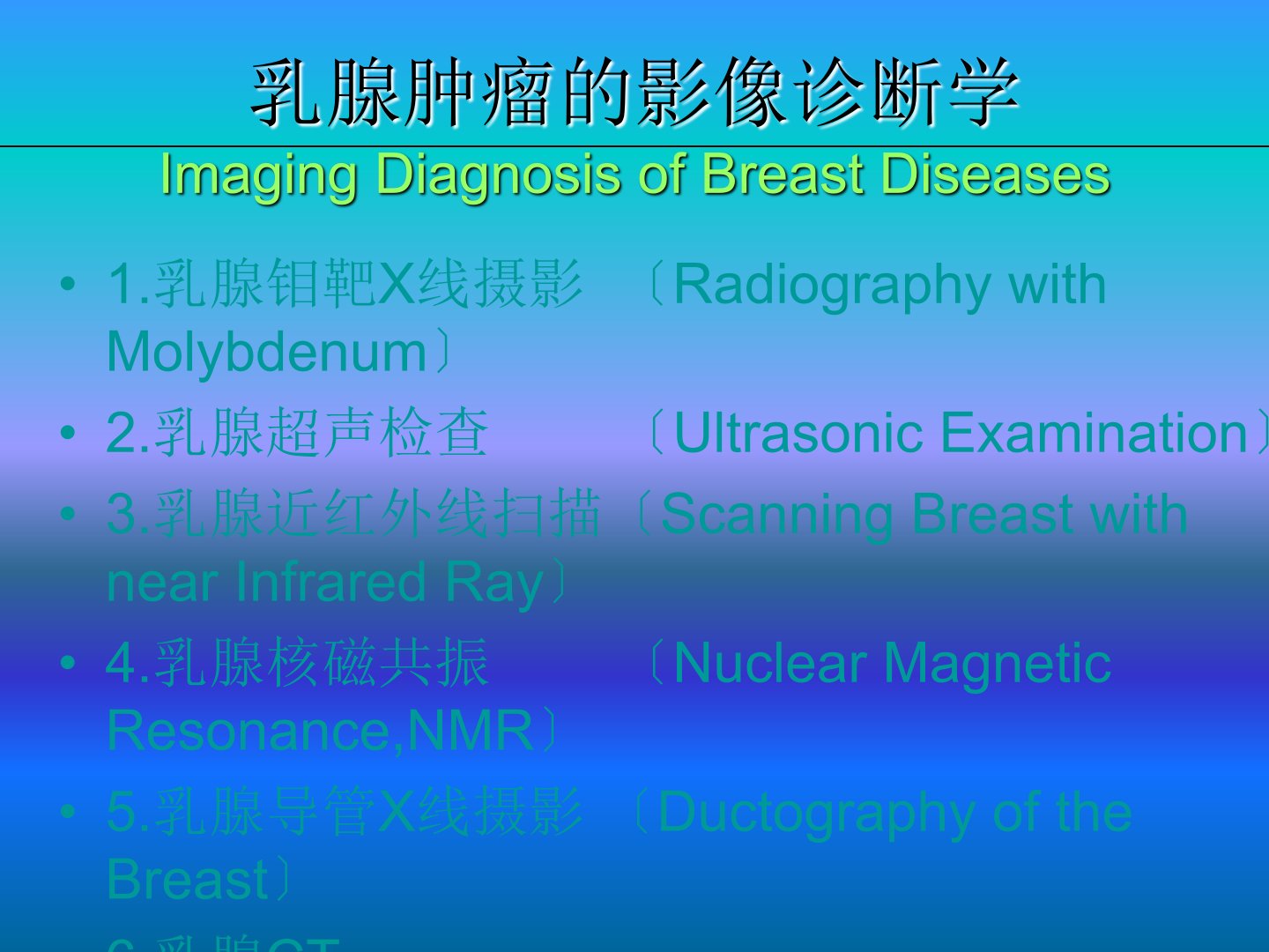 乳腺疾病X线诊断涵盖多种影像学检查方法,包括乳腺钼靶X线摄影、乳腺超声检查、乳腺近红外线扫描、乳腺核磁共振、乳腺导管X线摄影、乳腺CT及乳腺PET-CT等。多项临床实验表明,50-74岁妇女进行乳腺摄片普查可降低乳腺癌死亡率,其中乳腺钼靶摄片效果最佳。乳腺钼靶X线摄影包括轴位、侧斜位等拍摄方法,能充分显示乳腺及乳后组织,减少尾部、副乳及腋下淋巴结遗漏。正常乳腺X线表现分为致密型、分叶型、团块型、束带型、串珠型和萎缩型等,与年龄、生理状态密切相关。乳腺常见疾病X线表现各异,如乳腺增生症表现为腺体片状、团块状改变,乳腺纤维腺瘤表现为圆形、卵圆形肿块,有时可见透亮晕,而乳腺癌则常表现为肿块、钙化及结构扭曲等。乳腺恶性肿瘤影像学诊断中,钼靶摄片检查是早期检出和诊断的金标准,乳腺癌X线直接征象包括肿块、钙化等,间接征象包括瘤周恶性晕征、皮肤增厚等。乳腺癌病因尚不完全清楚,但与年龄、月经初潮年龄和绝经年龄、乳腺良性疾病、雌激素、饮食习惯等因素有关。