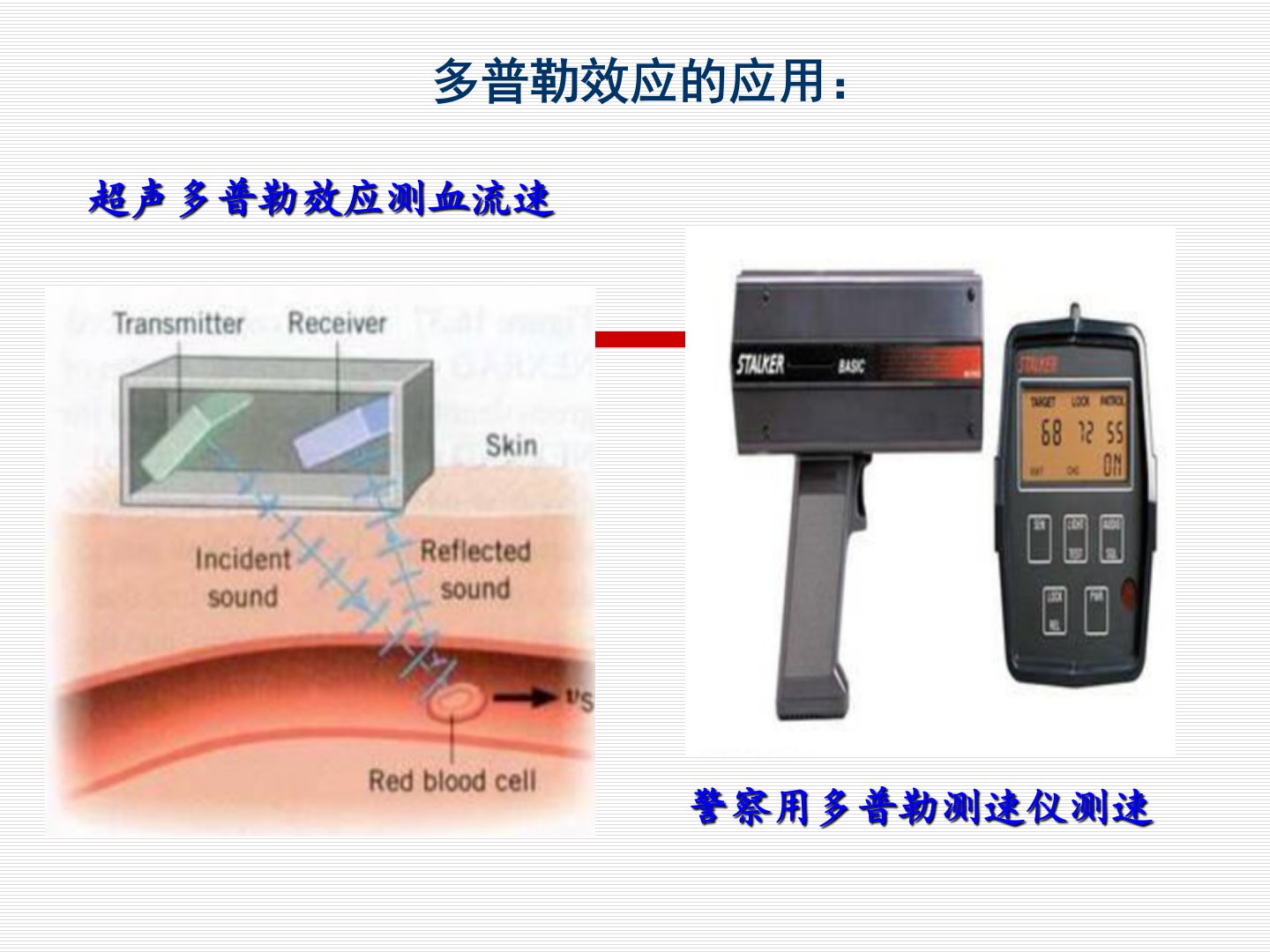 多普勒效应指当波源或观察者或两者均运动时,观察者感受到的频率与波源原频率不同。以声波为例,若每走一步发射一个脉冲,向前则脉冲频率变高,向后则变低。多普勒效应即发射源与接收体有相对运动时,接收频率与发射频率有差异,此差异称为多普勒频移。该效应在医学上有广泛应用,如多普勒血流仪可测血流速度,其中一种方法利用连续波超声多普勒效应,通过特定制式分离正向与反向血流。彩色多普勒能直观显示血流信息,叠加在B型灰阶图像上,对特定血流显示有优越性,但定量不如其他多普勒技术。激光多普勒血流仪则用于测定微循环血流量,其原理是多普勒频移,与红细胞运动速度和数量有关,还可估测组织灌流的空间差异。