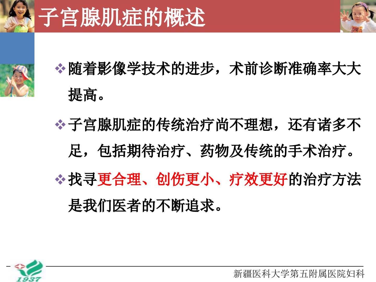 新疆医科大学第五附属医院妇科申报自治区重点专科介绍了HIFU联合药物治疗子宫腺肌症的临床应用。子宫腺肌症是一种发病率上升、难治的现代病其发病机制至今尚不清楚。传统治疗方法存在诸多不足因此医院不断追求更合理、创伤更小、疗效更好的治疗方法。HIFU(高强度聚焦超声)治疗作为一种非侵入性治疗方式通过适形治疗计划精准定位并消融部分子宫内膜异位病灶使病灶范围减少功能丧失。HIFU治疗子宫腺肌症具有无创、无需麻醉、无治疗中失血、安全并发症少、保留子宫、可重复治疗等优势。医院选取了2016年的72例子宫腺肌病患者进行随机分组治疗结果显示HIFU联合GnRHa治疗可显著降低血清CA125水平改善痛经症状。讨论指出超声消融子宫腺肌病安全有效症状可获得持续缓解联合药物治疗可显著提高症状改善率及降低复发机率。