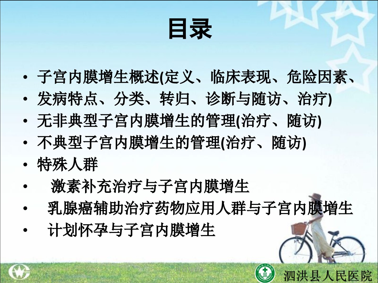 妇产科副主任医师刘金艳介绍了子宫内膜增生的管理知识。子宫内膜增生指子宫内膜腺体与间质比例相对正常增殖期比例升高的一种不规则增殖2014年WHO修订版将其分为无不典型性的子宫内膜增生和子宫内膜不典型增生两类。其最普遍的临床表现是异常子宫出血诊断推荐经阴道超声、子宫内膜组织的病理检查宫腔镜检查等。治疗方面无非典型增生可用LNGIUS、口服孕激素或手术;不典型增生无生育需求可子宫切除有生育需求可用LNGIUS或口服孕激素。特殊人群中激素补充治疗应避免单雌激素方案;他莫昔芬可能增加子宫内膜增生风险芳香化酶抑制剂风险尚不明确;计划怀孕的女性妊娠前应至少有一次子官内膜活检结果为阴性且建议借助辅助生殖技术。
