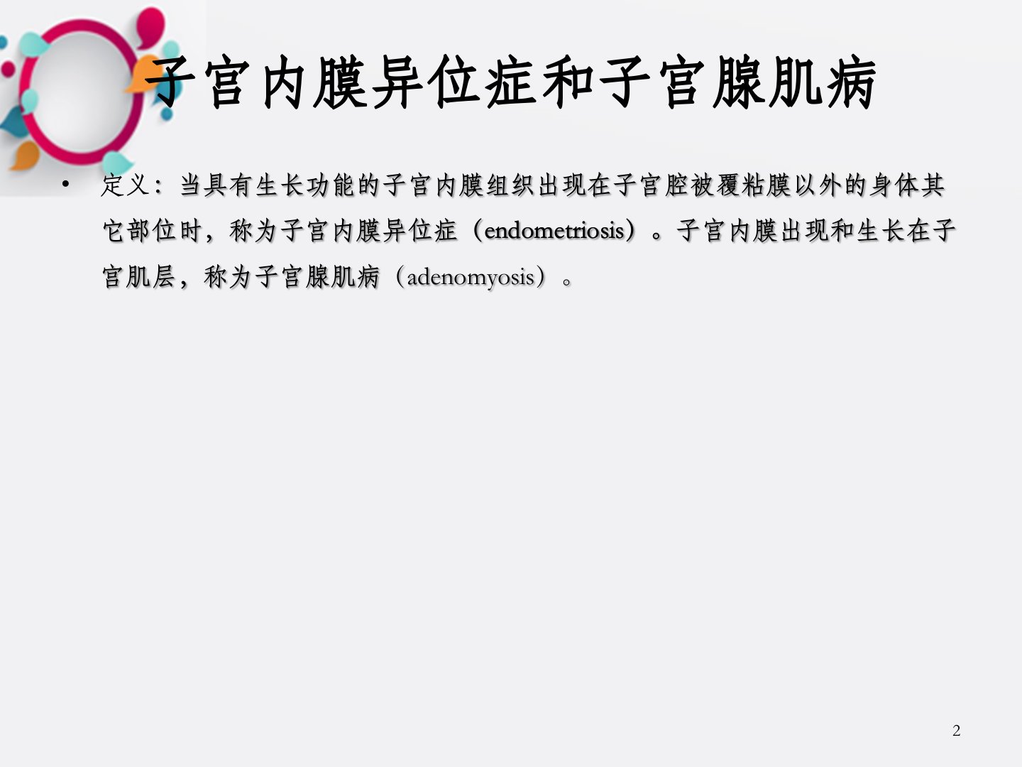 摘要本文聚焦子宫内膜异位症和子宫腺肌病。子宫内膜异位症指生长功能的子宫内膜组织出现在子宫腔被覆粘膜以外的身体部位多见于2545岁生育年龄妇女80位于盆腔内卵巢。发病机制包括子宫内膜种植学说、淋巴及静脉播散学说、体腔上皮化生学说。病理变化为异位内膜随激素变化周期性出血伴纤维组织增生和粘连。临床表现有痛经、月经失调、不育等诊断依赖B超和腹腔镜检查需与卵巢恶性肿瘤等鉴别。预防措施包括防止经血逆流、避免手术操作引发等治疗有随访观察、药物疗法、保留生育功能手术、腹腔镜手术等多种方式。子宫腺肌病是子宫内膜侵入子宫肌层多发生于3050岁经产妇病理上子宫多均匀增大临床表现有继发性痛经等。
