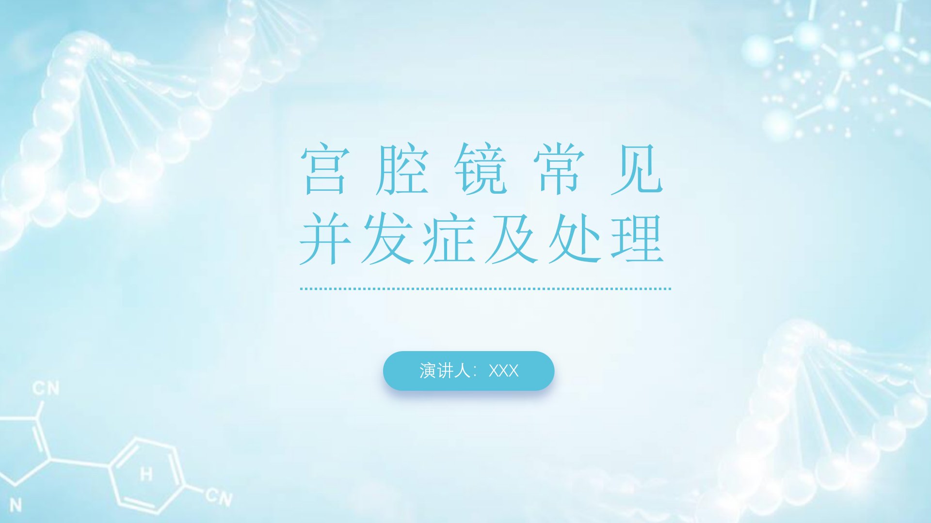 宫腔镜常见并发症及处理摘要演讲人XXX围绕宫腔镜常见并发症及处理展开介绍。首先介绍宫腔镜是妇科微创技术与电视内镜技术结合的产物具有直观、准确、创伤小等特点但存在手术空间狭小等局限甚至有致死风险。其适应症广泛包括异常子宫出血、子宫内膜息肉等多种情况;禁忌症有急性子宫内膜炎等绝对禁忌证以及体温过高等相对禁忌证。常见并发症有子宫穿孔、TURP综合征、术中及术后出血、感染、空气栓塞等。子宫穿孔又分为机械性和能量损伤前者多轻微后者可致宫壁组织缺失。对于并发症要熟知原因、症状、预防及防治方法。如子宫穿孔先查找部位再决定方案底部穿孔可用缩宫素及抗生素治疗侧壁及峡部穿孔应立即开腹探查。预防子宫穿孔对高危因素者要加强监护术前充分准备。TURP综合征要吸氧、利尿、纠正电解质紊乱等预防关键是减少灌流介质吸收。此外演讲还提及了术前术后健康教育内容包括完善检查、皮肤准备、饮食调整等术前事项以及术后观察、活动、卫生等注意事项。最后指出治疗性宫腔镜并发症发生率及严重性高于检查性操作者需充分培训并取得资质。