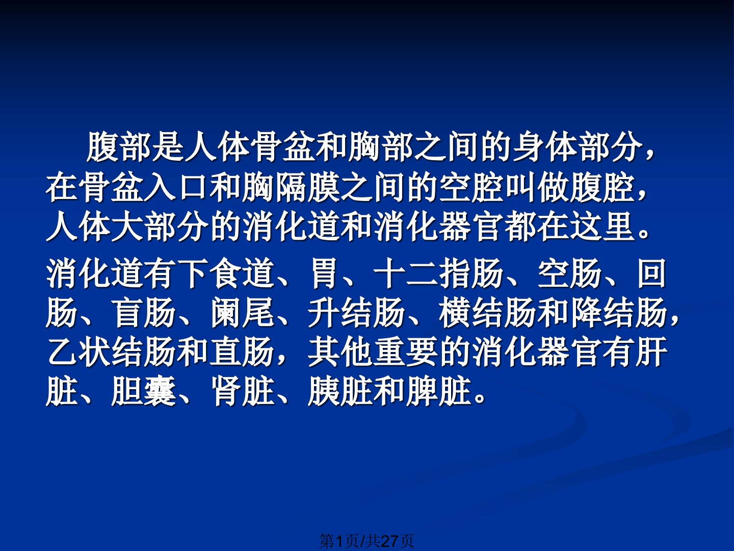 作为医生对于腹痛评估教学材料我总结如下:腹部位于骨盆与胸部间含大部分消化道及肝、胆、肾等重要器官。腹痛作为临床常见症状部位常与疾病相关。教学介绍了腹部四区法、九区法分区指出不同部位腹痛可能关联的脏器或疾病如右上腹痛可能与胆结石、胆囊炎相关上腹痛可能与胃病、十二指肠溃疡等有关。腹痛病因多样包括腹腔脏器炎症、梗阻、扭转或破裂等。评估要点涵盖腹痛部位、性质与程度、诱发与缓解因素及伴随症状如突发剧烈刀割样腹痛可能为胃、十二指肠溃疡急性穿孔。护理诊断问题涉及疼痛、焦虑、睡眠型态紊乱等。教学中通过案例分析如23岁男性患者转移性右下腹痛案例展示评估实际应用。最后强调经常腹痛要查因不要乱吃止痛片以免掩盖症状延误治疗。