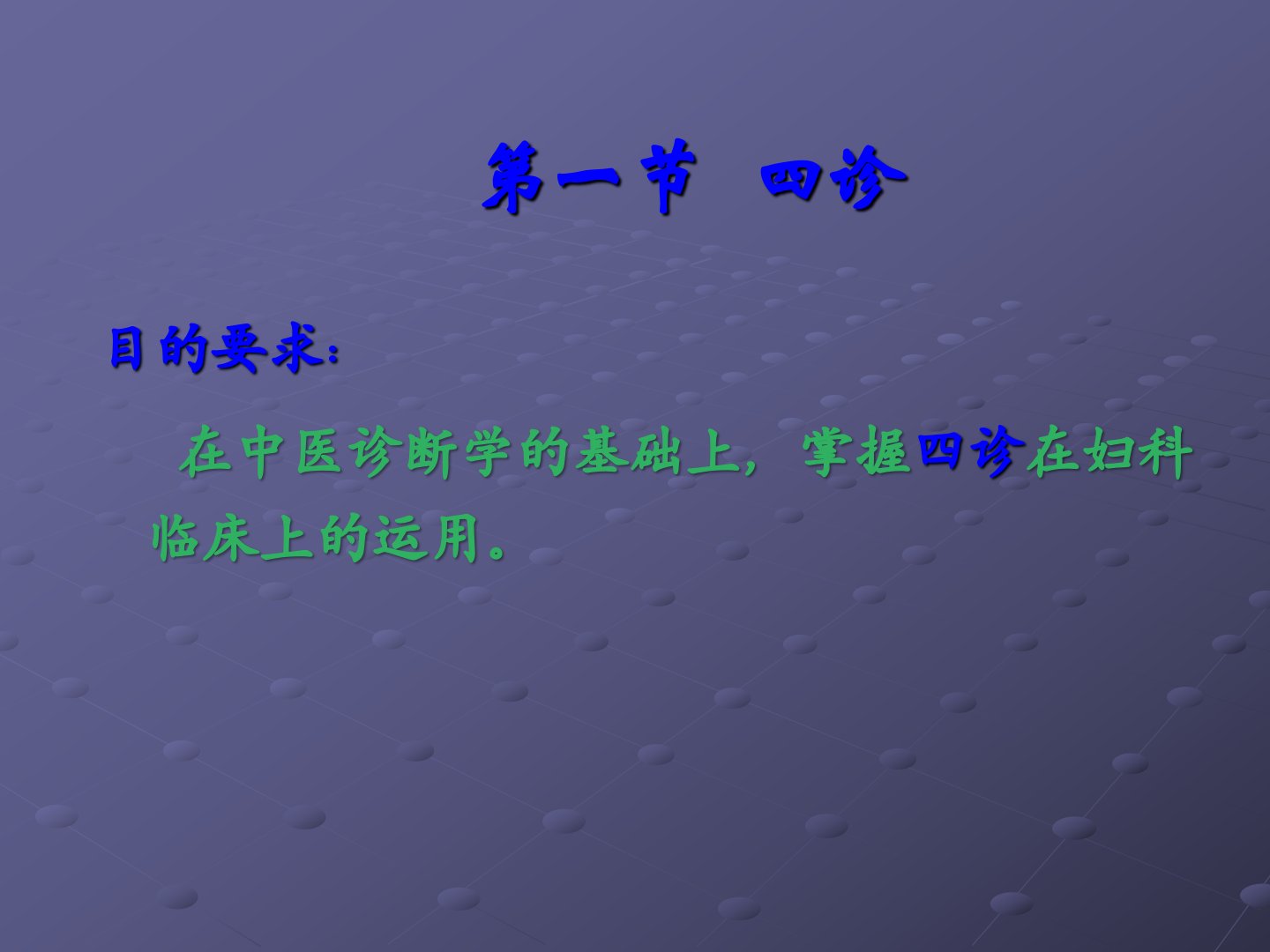 中医妇科学总论第五章摘要第一节四诊目的在于掌握四诊在妇科临床的运用。问诊涵盖年龄、主诉、现病史等九个方面全面了解患者情况。望诊包括神形如神态反映病情轻重;面色可反映脏腑气血盛衰等;舌象可反映脏腑寒热等;毛发状态可反映身体状况;经带恶露等颜色形态可判断病症。闻诊听声音判断患者状态听胎心音了解胎儿情况闻气味辨别经、带、恶露等异味。切诊包括脉诊不同生理时期脉象不同;按肌肤、胸腹、四肢了解身体软硬、温凉等情况;妇科检查辅助诊断。第二节辨证要点要求掌握妇科常用辨证方法熟悉经带胎产病辨证要点及常见证型。常用辨证方法有脏腑、气血、奇经辨证。月经病辨证看期量色质及伴随症状;带下病看量色质气味及阴部症状;妊娠病先辨胎儿存活与发育;产后病先审腹痛、恶露次审大便、津液再审乳汁、饮食。常见证型及全身证候可自学产后讲究“三审”。第三节辨病与辨证辨病与辨证关系是中医诊断学核心强调二者结合包括中医辨病与辨证结合、中医辨证与西医辨病结合这是现代中医及中西医结合的新发展。