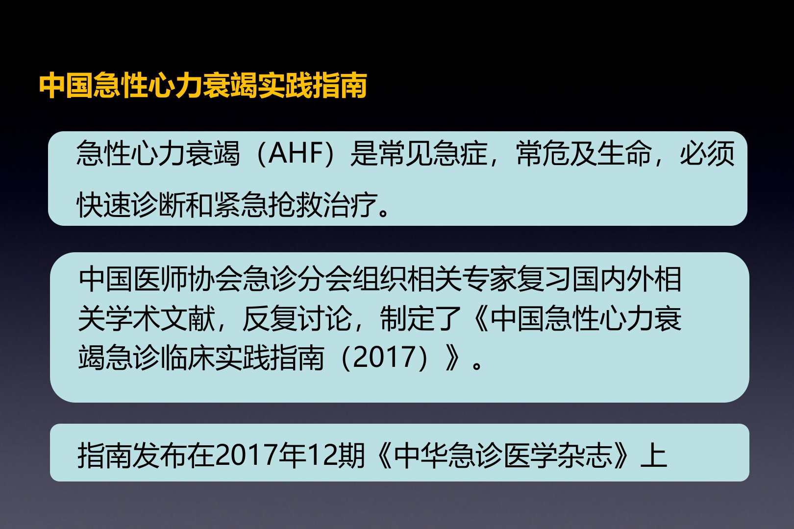 中国急性心力衰竭急诊临床实践指南2019(中国医师协会急诊分会)中国心力衰竭诊治和诊疗指南.中华心血管病杂志,2014,42(2):98-122.201420072010中国心力衰竭指南慢性心力衰竭诊断治疗指南急性心力衰竭诊断和治疗指南中国心力衰竭诊治和治疗指南在前两版心衰指南的基础上,参考近年来发布的新药物和新技术的应用的临床证据,进行了内容更新,为心衰诊治提供依据和原则,帮助临床医师做出医疗决策。定义、流行病学慢性心衰的评估HF-REF的治疗HF-PEF诊断治疗急性心衰难治性终末期心衰心衰病因和合并症的处理右心衰竭心衰整体治疗随访管理中国急性心力衰竭实践指南本指南对推荐类别Ⅰ类:指已证实和...