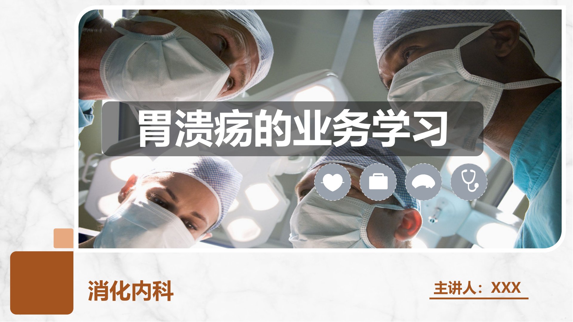 消化内科业务学习聚焦胃溃疡主讲人XXX介绍了相关知识、护理原则及健康宣教。胃溃疡(GU)属消化性溃疡位于贲门至幽门间其形成与胃酸、胃蛋白酶消化作用有关。病因包括幽门螺杆菌感染、药物及饮食因素、胃酸分泌异常、应激精神因素、遗传因素等。主要症状为上腹部疼痛诊断依赖周期性上腹疼痛及X线钡餐、内镜检查。并发症有上消化道出血、溃疡穿孔、幽门梗阻及可能的癌变。治疗以药物为主包括抑制胃酸分泌药、粘膜保护剂等幽门螺杆菌阳性需联合用药同时需注意食物选择。护理上需评估病人疼痛观察腹痛规律、大便性状及并发症给予腹痛、营养失调护理及心理支持指导规律生活、进餐避免刺激性食物。健康宣教强调合理安排作息保证充足睡眠生活规律避免精神紧张和劳累合理饮食戒烟戒酒慎用或勿用致溃疡药物坚持遵医嘱服药定期复查识别复发、出血症状及时就诊年长患者定期门诊复查防癌变。
