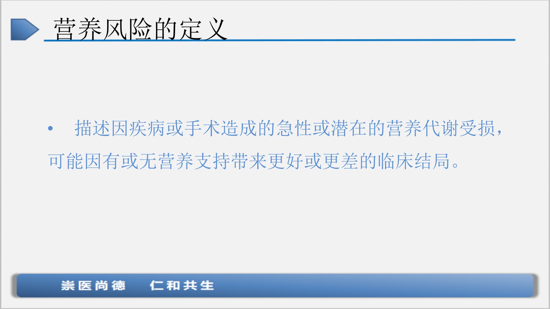 营养风险筛查、评估及肠内营养护理摘要住院患者营养状况与临床治疗效果及疾病转归密切相关。研究显示3050的住院患者存在营养不良营养不良可能导致体重丢失、康复延迟、感染风险增加等不良后果。因此住院患者的营养治疗应从正确的营养状况评价开始常用方法包括膳食调查、体格测量、生化检测等。目前使用NRS2002对1890岁住院患者进行营养风险筛查3分及以上患者有营养不良风险需请营养科会诊进行综合营养评估确定营养治疗方案。治疗膳食在基本饮食基础上调整肠内营养通过口服或管饲为消化功能障碍病人提供营养肠外营养则经静脉为无法胃肠道摄取营养的患者提供。肠内、肠外营养制剂有多种选择。肠内营养时需定期检测按病情调整膳食注意温度和速度。肠内营养并发症需及时处理如鼻胃管质地粗糙致溃疡、电解质紊乱等。对接受肠内营养治疗的患者应进行消化情况、液体平衡、体重等监测。