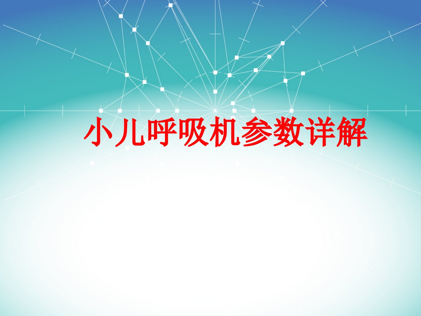 小儿呼吸机参数详解机械通气是当代急诊医学的重要内容和ICU的主要任务之一。机械通气是一项复杂而有一定危险性的治疗措施,需投入大量人力物力,使用不当会产生各种严重并发症.目前主张早用,以免发生多脏器功能衰竭和心肺骤停,丧失抢救时机。完全控制通气控制+支持自主呼吸机械通气参数的选择3N2L原则:3N:正常频率,正常VT,正常I:E比2L:低压力,低氧浓度维持PaO2(60mmHg-90mmHg)儿童的机械通气必须估计小儿的生理特点尤其是新生儿。1.氧浓度(FiO2)2.容量参数:气体流速(Flow)L/min或L/秒潮气量(TidalVolume,VT)每分通气量(minuteventilatio...