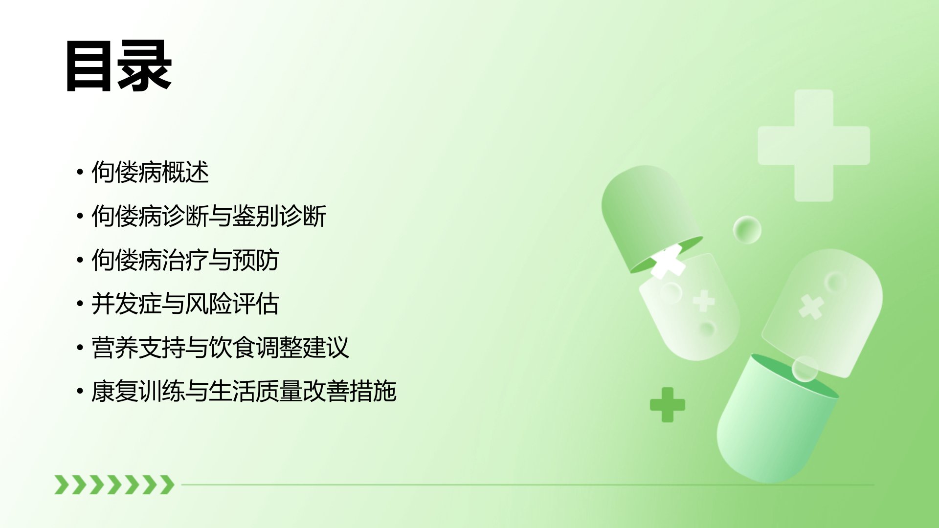 佝偻病摘要佝偻病是因维生素D缺乏致钙磷代谢紊乱、骨骼发育异常的慢性营养病多见于3岁以下婴幼儿女性患病率略高于男性。活动期表现骨骼改变如颅骨软化等早期主要是神经兴奋性增高。根据临床表现可分为轻、中、重度三种类型。诊断需与软骨发育不良等疾病鉴别要综合症状、体征、实验室检查(如血清钙等生化指标、维生素D水平测定)及影像学检查(X线、CT、MRI)结果。治疗与预防方面早期发现治疗是关键药物治疗主要选维生素D和钙剂用药需遵医嘱。预防则要保证钙和维生素D摄入多吃富含钙和维生素D的食物适当日光照射定期体检。佝偻病可能引发骨骼畸形、生长迟缓、肌肉无力等并发症需进行风险评估、建立预警机制、筛查高危人群。营养上要确保钙摄入、补充维生素D、均衡饮食。康复训练需评估患者状况制定个性化计划并定期调整同时做好疼痛管理、营养支持、心理干预等。
