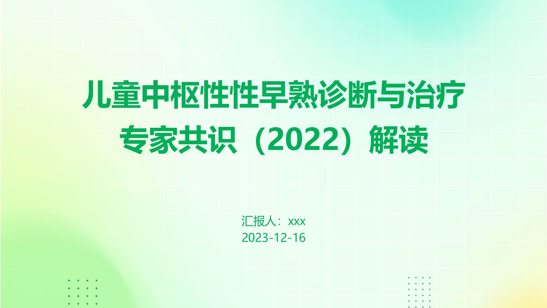 儿童中枢性性早熟诊断与治疗专家共识(2022)解读PPT课件【28页】