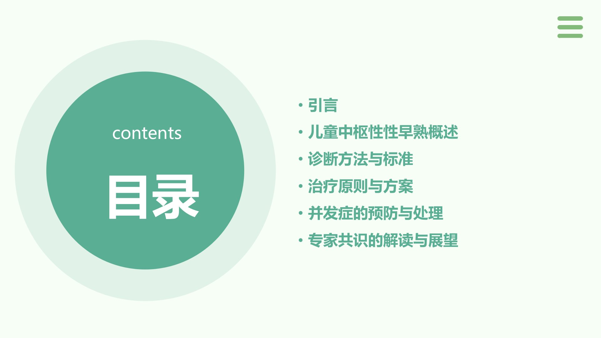 《儿童中枢性性早熟诊断与治疗专家共识(2022)》解读摘要如下:儿童中枢性性早熟是常见生长发育异常疾病严重影响儿童身心健康。目前其诊断和治疗存在较大差异和不规范性解读专家共识有助于加深对该疾病的认识规范其诊断和治疗流程提高临床医生诊疗水平提升治疗效果和患者生活质量。中枢性性早熟指儿童青春期前出现与年龄不符的第二性征发育性腺发育提前可分为GnRH依赖性(真性)和非GnRH依赖性(假性)性早熟主要由下丘脑垂体性腺轴功能提前激活导致。其诊断依据临床表现、辅助检查结果需排除其他原因引起的性早熟。诊断包括病史采集、体格检查、B超、MRI检查等流程并参照国际和国内相关指南和标准制定诊断标准。治疗原则包括病因治疗、抑制过早或过快的性发育、缓解心理社会问题并根据患儿情况制定个体化方案进行定期随访建立多学科协作团队。此外还需预防和处理生长发育、心理行为、生殖系统等并发症。专家共识的推广有助于更新诊断标准提高诊疗水平促进规范化治疗增强患者信心。