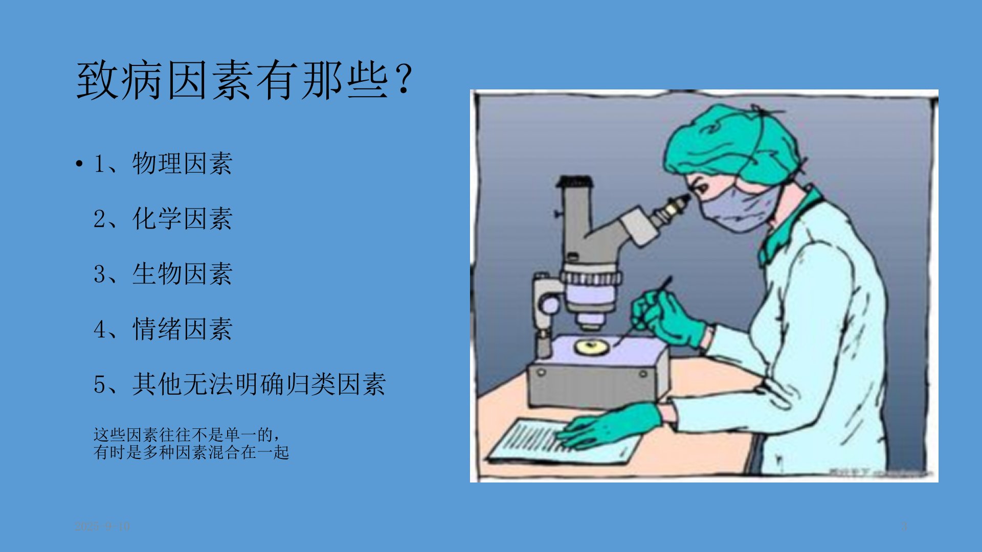 作为医生我认为人得病是因致病因素超出人体耐受。致病因素多样包括:1物理因素如外力(车祸、棍棒、刀等)、冷热作用(烧烫伤、冻伤)、各种射线(核污染、紫外线等);2化学因素如环境污染(化工厂、农药等)、不合格食物;3生物因素如细菌、病毒、寄生虫;4情绪因素情绪可致胃病影响肿瘤患者免疫力;5其他无法明确归类因素有些疾病病因尚不清楚。预防原则是尽可能避开致病因素如避开车祸等外力伤害、远离射线、保护环境防污染、不吃不合格食物等。治疗要站在生命之上不断学习。有病要到正规医院看医生因疾病复杂合格医师需具备多方面知识。医生应体验生命、站在生命之上守护生命。