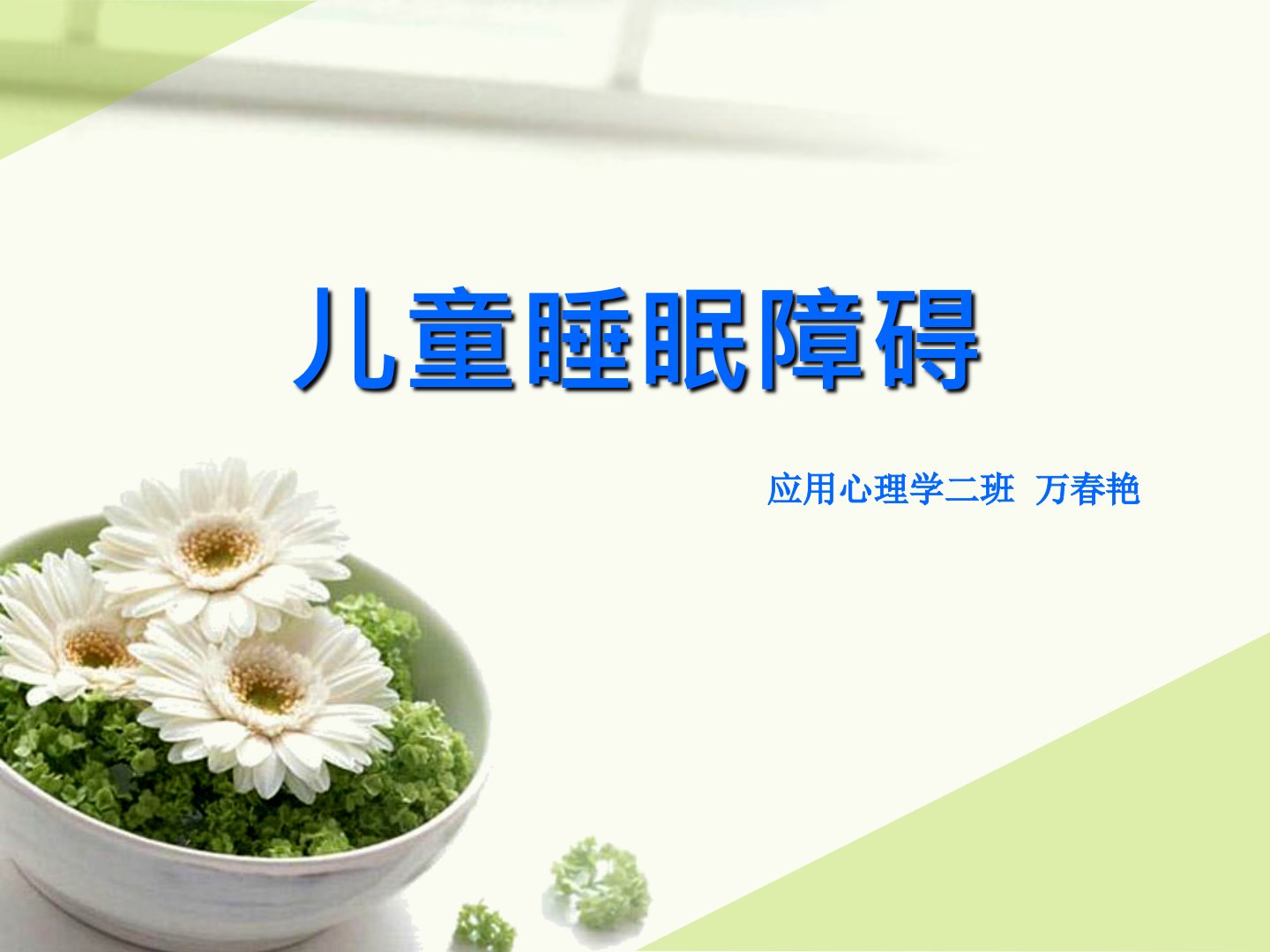 儿童睡眠障碍摘要应用心理学二班万春艳指出睡眠对儿童意义重大有助于消除疲劳、保护大脑、提高免疫力对儿童中枢神经系统发育和体格生长也必不可少。睡眠障碍指睡眠中的异常表现可由多种因素引起影响儿童睡眠结构等。常用分类与诊断标准有DSMIV、ICD10和ICSD。《国际睡眠障碍分类指南》第一版将睡眠障碍分为四大类包括睡眠失调、异态睡眠、伴发其他问题的睡眠障碍、其他睡眠问题。儿童期常见睡眠障碍有入睡困难和睡眠不安、夜惊、梦魇、梦游、发作性睡病、阻塞性睡眠呼吸暂停综合征等各有不同表现。引起儿童睡眠障碍的原因包括:生理因素如大脑发育不完善、遗传、躯体疾病等;心理因素如生活事件导致的精神紧张;不良睡眠习惯;社会环境因素如居住环境差、家庭环境不良、教养方式不当等。治疗方法有心理治疗如疏导疗法、放松疗法、刺激控制疗法、渐进性放松训练;培养良好睡眠习惯;改善睡眠条件;调整教育方式;身体因素引起或长期反复的睡眠障碍需药物治疗。儿童睡眠障碍若不有效治疗负面影响大或成成人睡眠障碍主因儿童期也会导致多种问题。