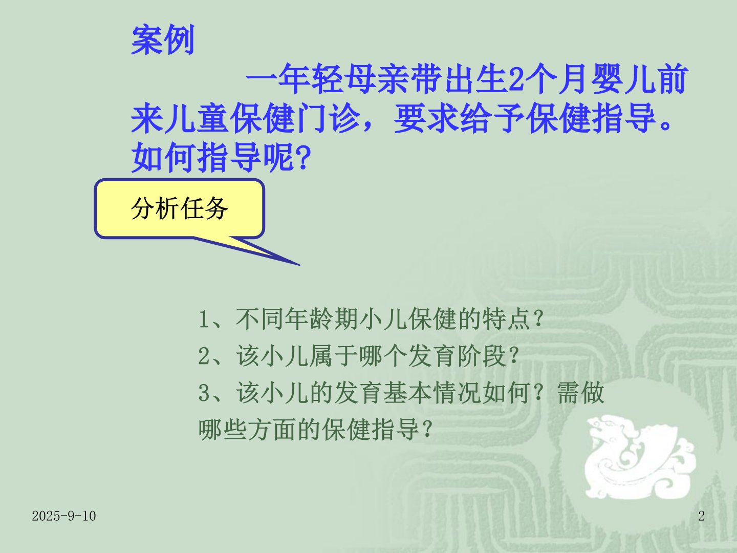 儿童保健和疾病预防摘要年轻母亲带2个月婴儿前来儿童保健门诊咨询涉及不同年龄期小儿保健特点、发育阶段判断及保健指导。不同年龄期小儿保健特点如下:胎儿期:胎儿发育依赖母体保健以孕母为重点包括产前、产时、产后保健预防遗传病、先天畸形等保证营养保持心情愉悦。新生儿期:体温调节差、适应能力弱保健重点在生后1周内要做好保暖、合理喂养、预防疾病意外、日常护理及早期教育。婴儿期:生长发育快但消化功能不完善要合理喂养、做好日常护理、预防疾病意外、开展早期教育及体格锻炼。幼儿期:易发生意外伤害和感染性疾病保健要点包括合理营养、日常护理、预防疾病意外、早期教育及体格锻炼。学龄前期:智力发育快求知欲强要合理营养、注重日常护理、预防疾病意外、开展早期教育及体格锻炼。学龄期:认知和心理社会发展迅速要合理营养、做好日常护理、预防疾病意外、注重教育及体格锻炼。青春期:体格及生殖系统发育迅速要合理营养、做好日常护理、开展教育、预防疾病意外及体格锻炼。小儿计划免疫包括主动免疫和被动免疫我国规定1岁内婴幼儿必须完成卡介苗等5种疫苗接种接种时需严格掌握禁忌证、执行免疫程序、查对制度遵守无菌操作并注意处理局部和全身反应及异常反