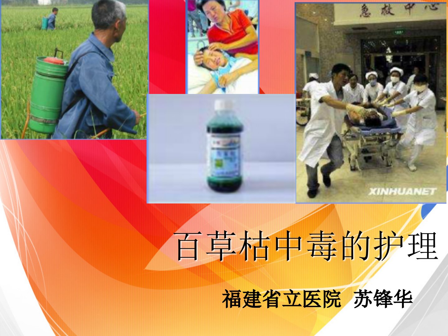 百草枯中毒的护理摘要本文由福建省立医院苏锋华介绍百草枯中毒护理相关内容。百草枯又名对草快等商品名为“克芜踪”20溶液呈墨绿色致死剂量小、病程进展快且无特效解毒药病死率达7580致死量为13g(20溶液515ml)。临床表现上中到重型中毒者会立即呕吐数小时有消化道症状1224h出现肾损伤14d内肝、心等受损12W内肺功能恶化。救治原则包括立即终止接触、清除未吸收毒物、促进排出、对症支持、密切观察病情及心理护理。护理措施有口腔护理观察黏膜等情况;呼吸道护理一般禁止吸氧;消化道护理依病情调整饮食;血液净化治疗护理注重管路监护与无菌操作;同时做好病情观察以及心理指导和健康教育。