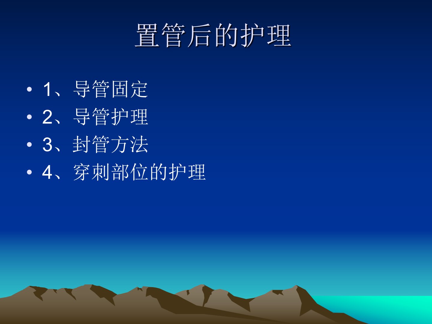作为医生现就相关导管护理内容做摘要如下:导管固定是基础且关键的步骤需确保导管位置稳定避免移位或脱落为后续护理提供保障。导管护理方面要着重关注多个环节包括穿刺部位的精心护理需保持局部清洁干燥预防感染;同时敷料的更换也极为重要要遵循规范流程根据实际情况定时更换保证敷料无菌且贴合为穿刺部位创造良好愈合环境。另外封管方法同样不可忽视正确封管可防止血液回流堵塞导管确保导管通畅。总之导管固定、护理及封管等各环节紧密相连共同构成完整的导管护理体系。医护人员需严格遵循操作规范以高度的责任心和专业技能做好每一项工作保障患者安全与健康。感谢大家聆听!