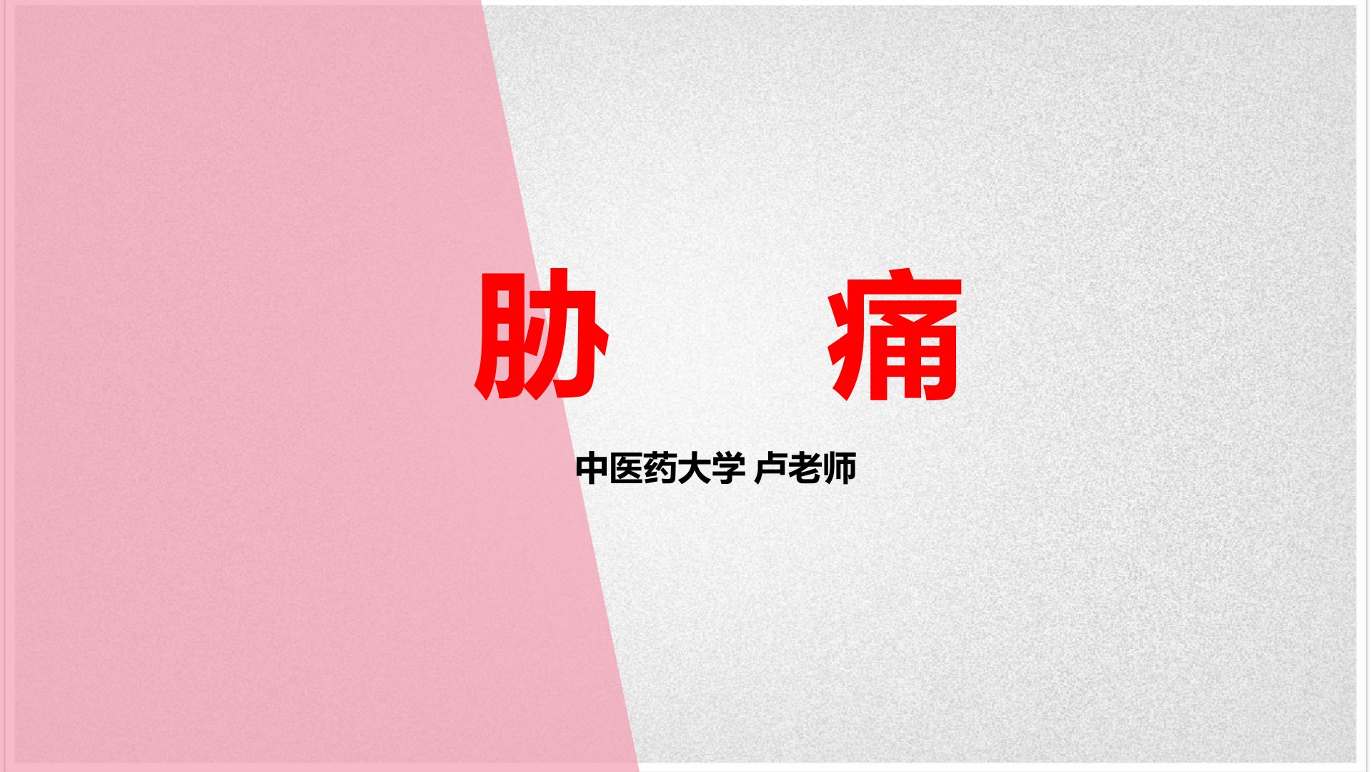 中医药大学卢老师介绍胁痛是以一侧或两侧胁肋部疼痛为主要表现的病证最早见于《内经》其发生与肝胆病变密切相关也与肝、胆、肾等脏器相关病因包括情志不畅、饮食不调等内因及外感湿热等外因病位在肝胆与脾胃及肾相关基本病机为肝气郁滞、络脉失和病理性质有虚有实以实为主。诊断时胁痛性质多样可伴胸闷、腹胀等症状常有饮食不节、情志内伤等病史。辨证论治时需辨气血与虚实胀痛多属气郁刺痛多属血瘀;实证多病程短、疼痛剧烈虚证多病程长、隐隐作痛。治疗以疏肝和络止痛为基本原则实证用理气、活血、清利湿热法虚证用滋阴、养血、柔肝法并详细介绍了肝郁气滞、肝胆湿热、瘀血阻络、肝络失养四种证型的主症、治法、代表方及常用药。