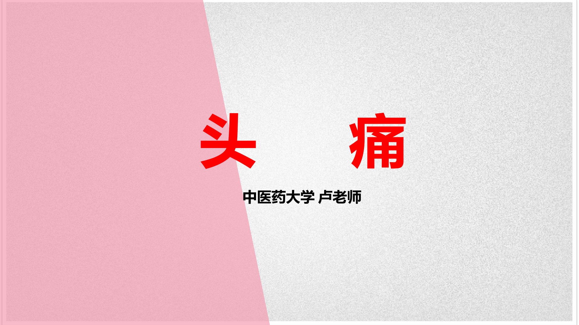中医药大学卢老师对头痛进行了系统阐述:头痛是以头痛为主要表现的病证可单独出现亦可见于多种疾病过程中。头痛一证首载于《内经》《伤寒论》等也对其有论述。头痛病因有内因(情志失调、先天不足等)和外因(感受风寒湿热之邪以风邪为主)。病位上外感头痛在表内伤头痛在肝肾;病性上外感头痛多属表属实内伤头痛病性复杂有虚有实。类证鉴别包括外感头痛与内伤头痛、不同归经头痛、不同疼痛性质头痛。治疗原则为外感头痛以疏风祛邪为主内伤头痛虚者滋阴养血、益肾填精虚实夹杂者扶正祛邪兼顾。具体有风寒、风热、风湿等外感头痛及肝阳、血虚、痰浊、肾虚、瘀血等内伤头痛的证型各证型有对应主症、治法、代表方和常用药。临证可随症加减还提及“引经药”及偏头痛特点与治疗。