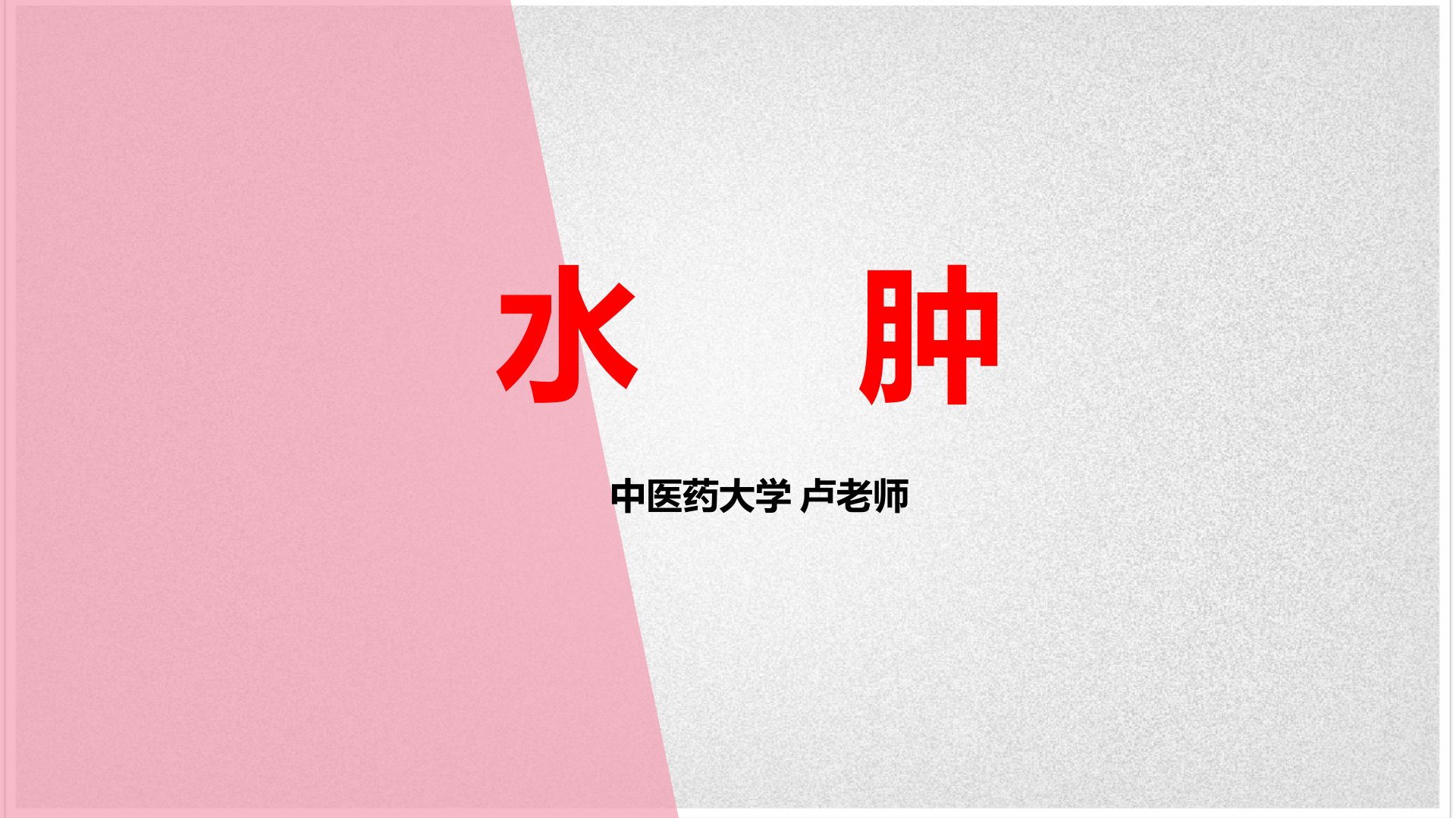 中医药大学卢老师围绕水肿展开讲解。水肿是体内水液潴留致肌肤浮肿的病证在《内经》中被称为“水”并被分为“风水”“石水”“涌水”。《素问》指出其病因病机与肺、脾、肾相关《金匮要略》对水肿进行分类并提出发汗、利尿的治法《备急千金要方》提出水肿需忌盐严用和提出阴水、阳水概念并倡导温脾暖肾之法《仁斋直指方虚肿方论》创立活血利水法《医学入门》提出疮毒致水肿病因学说。水肿病位在肺、脾、肾关键在肾病性分阴水、阳水。病因包括风邪、湿毒、水湿、饮食、久病劳欲等。诊断时水肿先从眼睑或下肢开始轻重程度不同严重者有危象且多有病史。辨证论治需先辨阳水、阴水治疗有三条基本原则具体有风水相搏、湿毒浸淫、水湿浸渍、湿热壅盛、脾阳虚衰、肾阳衰微、瘀水互结等证型各有主症、治法、代表方和常用药。临证时各证型有不同加减方法。预防上要注意调摄饮食、避免风邪外袭。转归方面病变后期可能由水肿发展为关格或转变为心悸、胸痹、眩晕、中风甚至成昏迷、谵妄。