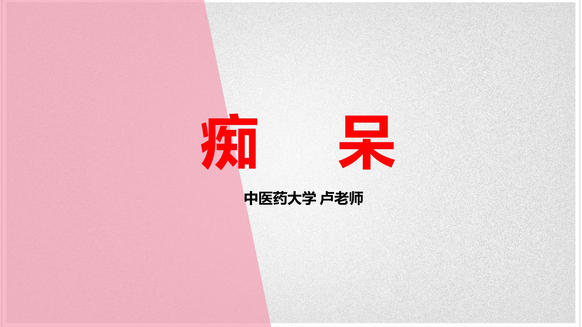 痴呆中医药大学卢老师目录概述011.概念痴呆是由髓减脑消,神机失用所导致的一种神志异常的疾病,以呆傻愚笨,智能低下,善忘等为主要临床表现。轻者可见神情淡漠,寡言少语,反应迟钝,善忘;重则表现为终日不语,或闭门独居,或口中喃喃,言辞颠倒,行为失常,忽笑忽哭,或不欲食,不知饥饿等。2.源流中医古籍中有关痴呆的专论较少。《景岳全书·杂证谟》有“癫狂痴呆”专篇,认为本病由“郁结、不遂、思虑、惊恐”等多种病因渐致而成,且临床表现具有“千奇百怪”、“变易不常”的特点,并指出本病病位在心及肝胆二经,对预后则认为本病“有可愈者,有不可愈者,亦在乎胃气、元气之强弱”。陈士铎《辨证录》亦立有“呆病门”,不仅对呆病...