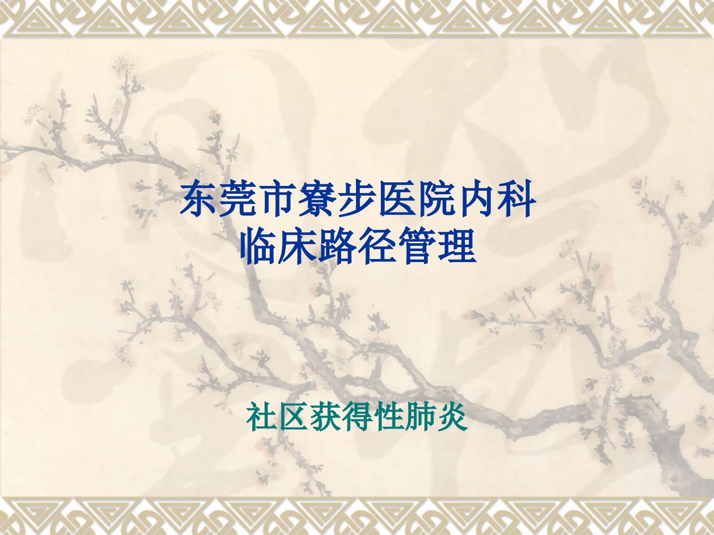 东莞市寮步医院内科介绍了社区获得性肺炎临床路径管理的相关内容。临床路径是综合多学科知识依据住院时间流程规定检查、治疗项目、顺序和时限旨在利用医疗资源规范医疗行为提升医疗质量。新一轮医改启动后卫生部将临床路径作为公立医院改革的重点内容。实施临床路径可规范诊疗行为改进医疗质量促进医患沟通降低医疗费用。医院为此成立了管理委员会、评价专家小组和实施小组并明确了各自的职责。内科选择社区获得性肺炎作为临床路径管理病种实施过程分为理论研究、开发试行、稳定推行和规范完善四个阶段。社区获得性肺炎临床路径明确了诊断依据、抗菌药物选择、初始治疗后评价、出院标准等内容并制定了详细的临床路径表单。