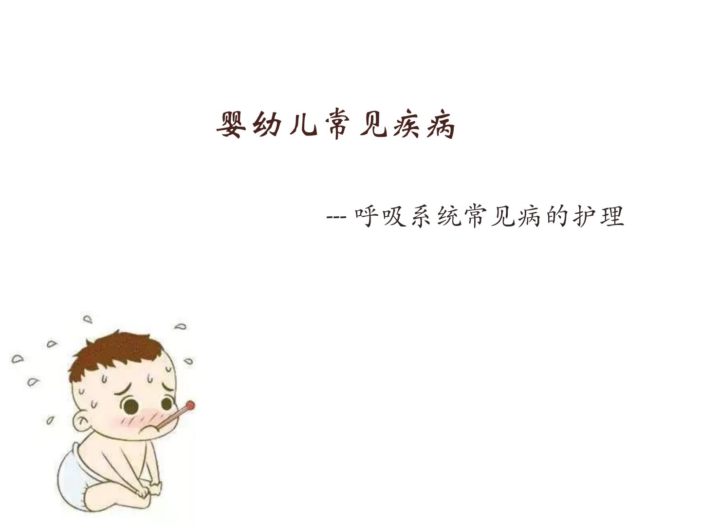 婴幼儿呼吸系统常见病中急性上呼吸道感染90由病毒引起易并发细菌感染症状包括鼻塞、流涕、咽痛、咳嗽、发热等感染蔓延可引发中耳炎、支气管炎、肺炎。护理时需遵医嘱密切观察体温超过385给予物理降温;松解衣被及时更换出汗衣物;保证营养及水分摄入鼓励多饮水给予易消化和富含维生素的清淡饮食;注意环境温度预防闷热保持适宜温湿度每日通风半小时以上保持室内空气清新。肺炎是婴幼儿常见病病原体多样诱发因素包括营养不良、免疫力低下等临床表现为发热、咳嗽、气促等。护理时需注意环境、饮食控制访客避免交叉感染遵医嘱用药。预防呼吸道感染需居室通风、锻炼身体、多喝水、穿衣适度避免到人多的地方。