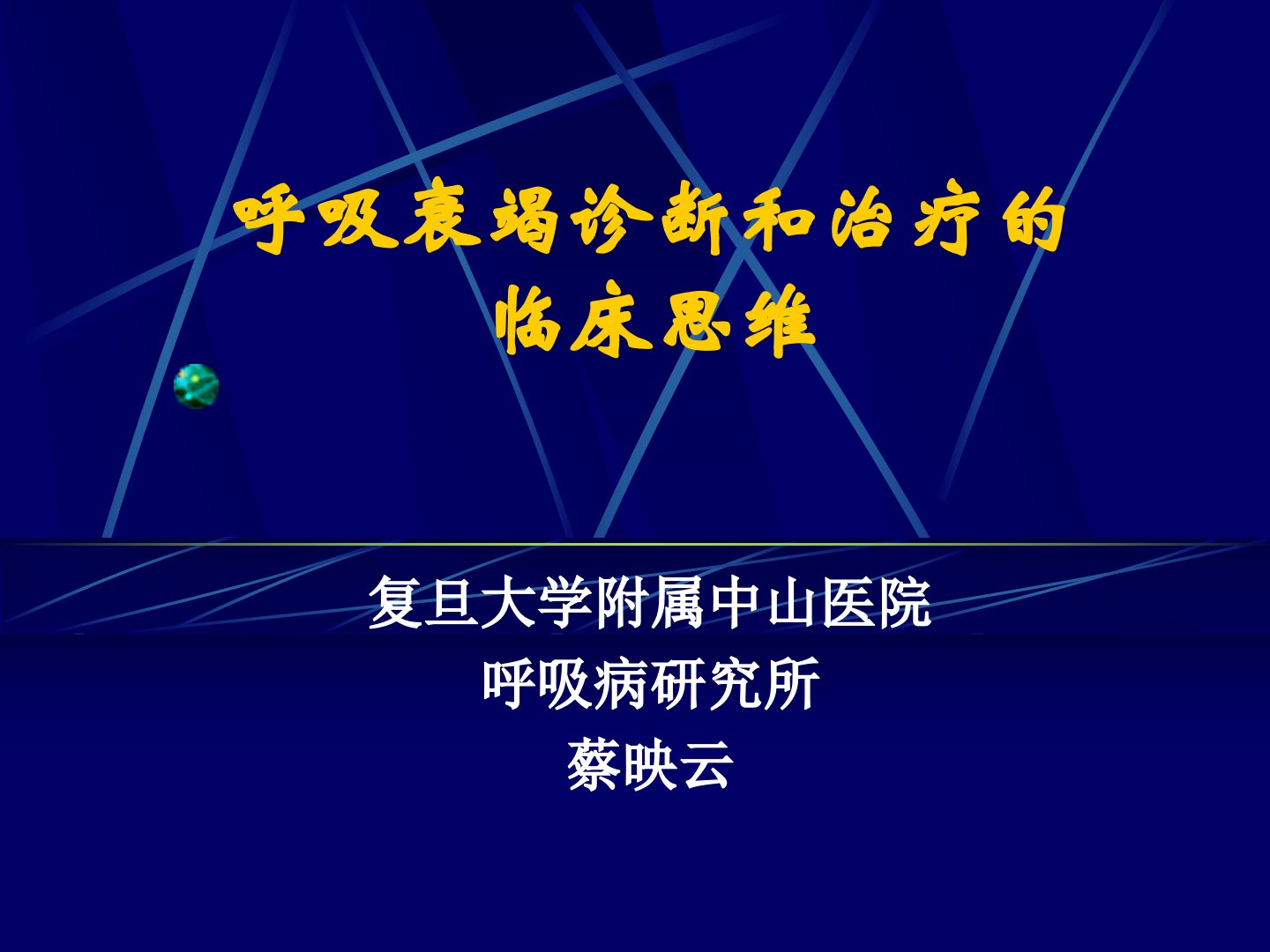 呼吸衰竭诊断和治疗的临床思维复旦大学附属中山医院呼吸病研究所蔡映云呼吸衰竭是指呼吸功能严重障碍,出现低氧血症伴或不伴有二氧化碳潴留,并由此引起一系列生理功能和代谢紊乱的临床综合症,其动脉血液气体的诊断标准各家有所出入,一般以PaO250mmHg为诊断标准。(一)临床思维的基础(二)临床思维的要点(一)呼吸衰竭诊断临床思维的基础1、信息的来源(1)相关病史和症状(2)体征(3)实验室和辅助检查2、信息要回答的问题(1)有无呼吸衰竭(2)呼衰分型(3)病情轻重(4)基础病变是什么(5)诱发因素是什么(6)并发症(7)伴发症(8)已行治疗和治疗反应(9)可逆性和预后3、相关病史和症状主诉现病史过去史...