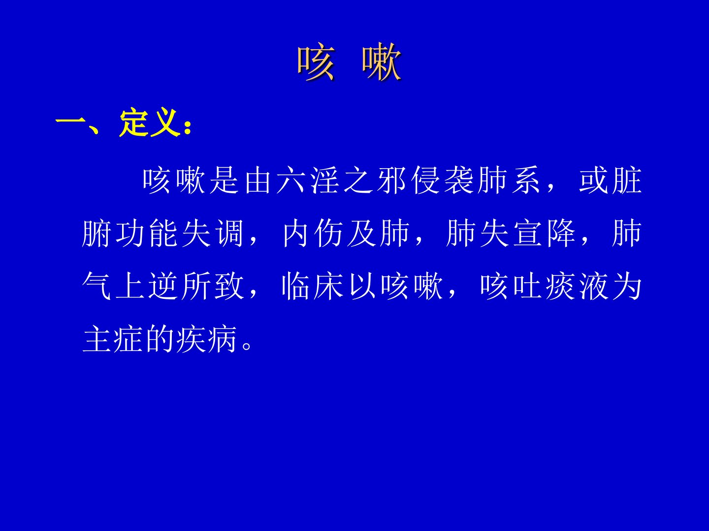 咳嗽咳嗽一、定义:咳嗽是由六淫之邪侵袭肺系,或脏腑功能失调,内伤及肺,肺失宣降,肺气上逆所致,临床以咳嗽,咳吐痰液为主症的疾病。二、源流(一)病因病机1、战国时期《素问·宣明五气论》:五气所病……肺为咳。2、《素问·咳论》:五脏六腑皆令人咳,非独肺也。3、《素问·阴阳应象大论》:秋伤于湿,冬生咳嗽4、清代陈念祖《医学三字经·咳嗽》“肺为脏腑之华盖,呼之则虚,吸之则满,只受得本然之正气,受不得外来之客气,客气干之则呛而咳矣;亦只受得脏腑之清气,受不得脏腑之病气,病气干之则呛而咳矣。”5、清代程国彭《医学心悟》“肺体属金,譬如钟然,钟非叩不鸣,风寒暑湿燥火六淫之邪,自外击之则鸣;劳欲情志,饮食炙溥...