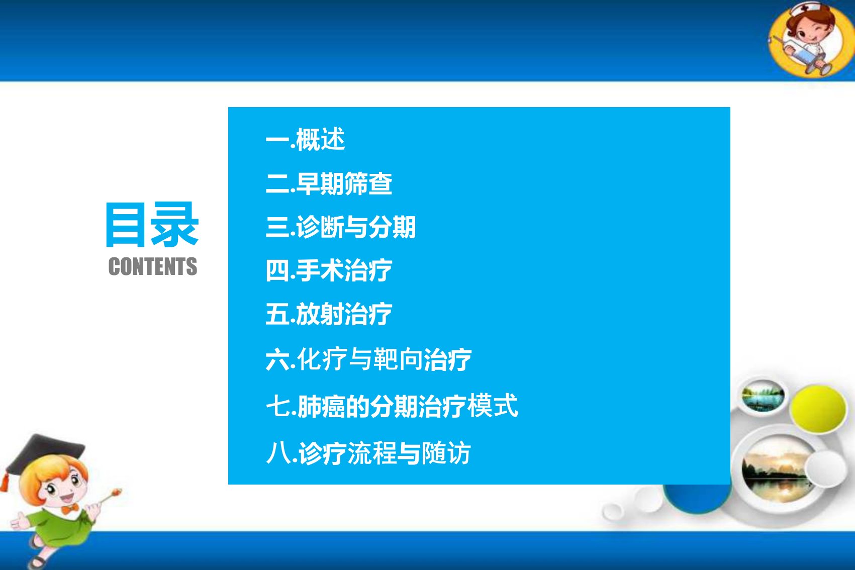 中国原发性肺癌诊疗规范此ppt下载后可自行编辑一.概述二.早期筛查三.诊断与分期四.手术治疗五.放射治疗六.化疗与靶向治疗七.肺癌的分期治疗模式八.诊疗流程与随访.目录CONTENTS概述原发性肺癌(以下简称肺癌)是我国最常见的恶性肿瘤之一全国肿瘤登记中心2014年发布的数据显示,2010年我国新发肺癌病例60.59万(男性41.63万,女性18.96万),居恶性肿瘤首位(男性首位,女性第2位),占恶性肿瘤新发病例的19.59%(男性23.03%,女性14.75%)。发病率与死亡率我国肺癌发病率为35.23/10万(男性49.27/10万,女性21.66/10万)肺癌死亡率为27.93/10万...