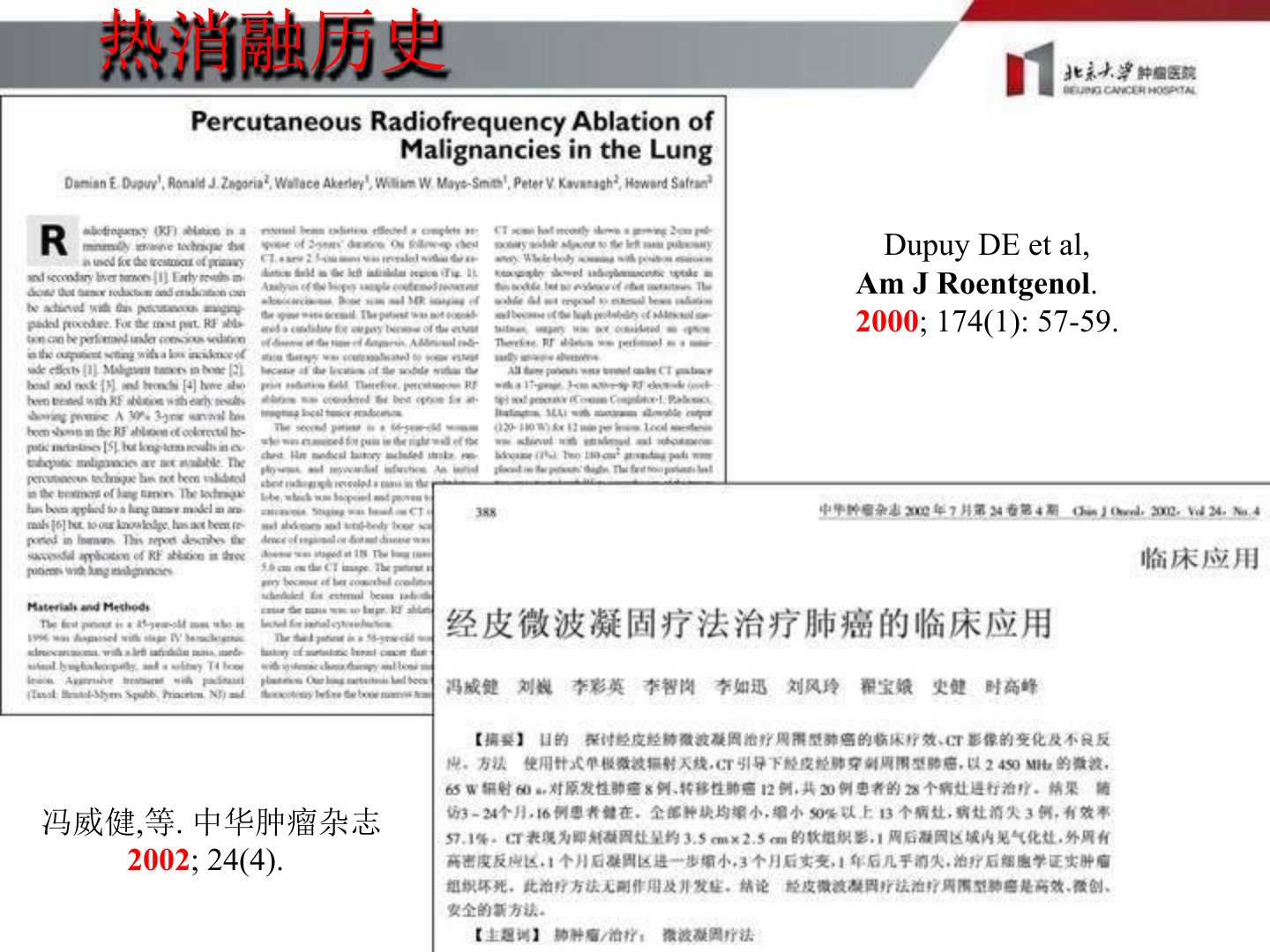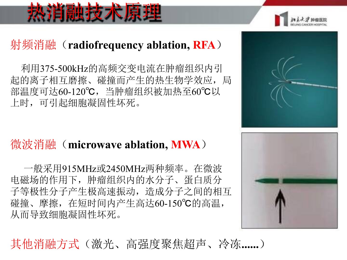 早期肺癌热消融技术的临床应用进展摘要热消融技术包括射频消融(RFA)和微波消融(MWA)等。RFA利用高频交变电流产生热生物学效应使肿瘤组织达到60120引起细胞凝固性坏死。MWA则通过微波电磁场使极性分子高速振动产生60150的高温导致细胞坏死。在疗效上MWA能产生更高的肿瘤内温度和更大的肿瘤消融体积且消融时间更快。与RFA相比MWA因能量沉积更广可能成为更优的治疗选择但RFA在经验上具有优势。对于无法手术的患者尤其是T1N0M0期患者RFA是一种可行的选择。此外热消融技术还被用于高龄、心肺功能差或多原发肺癌患者。多个病例显示微波消融后肿瘤结节缩小瘢痕形成并逐渐缩小。部分病例在活检后即刻行消融消融后即刻活检显示固化效应明显且未出血。热消融技术正成为早期肺癌较好的非手术干预选择。