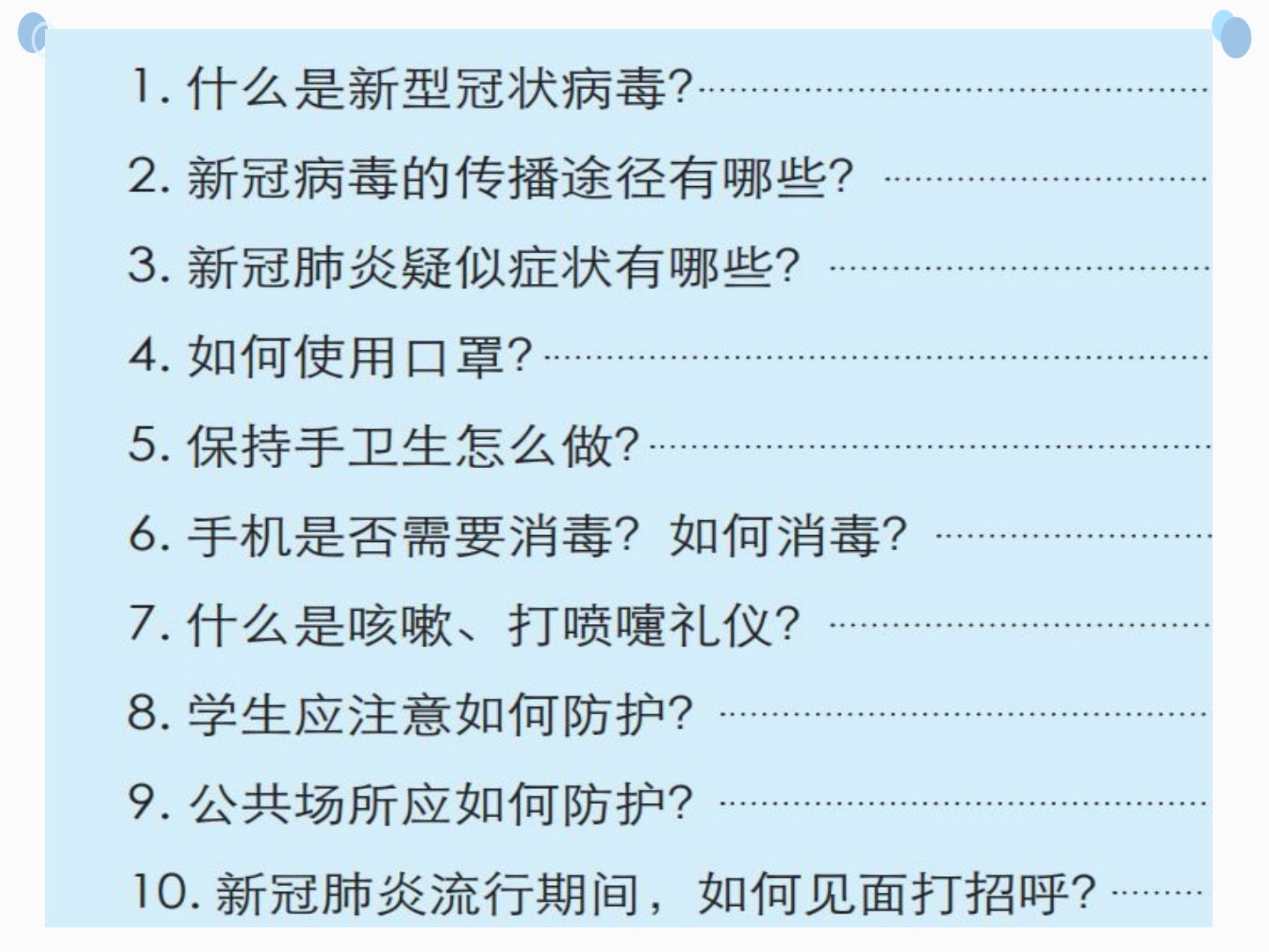预防新冠肺炎防护知识问答摘要本文围绕预防新冠肺炎以问答形式普及关键防护知识。在传播途径上明确新冠病毒主要通过飞沫传播、接触传播在相对封闭环境中长时间暴露于高浓度气溶胶情况下存在经气溶胶传播可能。预防措施方面强调个人防护至关重要。外出务必正确佩戴口罩选择医用外科口罩或N95口罩;保持手部卫生勤洗手使用肥皂或洗手液用流动水洗手也可用含酒精的免洗洗手液。同时注意保持社交距离尽量避免前往人员密集场所。日常生活中要保持室内空气流通定期开窗通风。注意营养均衡保证充足睡眠适度锻炼增强自身免疫力。若出现发热、咳嗽等症状应及时就医并主动告知医生旅行史和接触史配合做好防控工作共同守护健康。