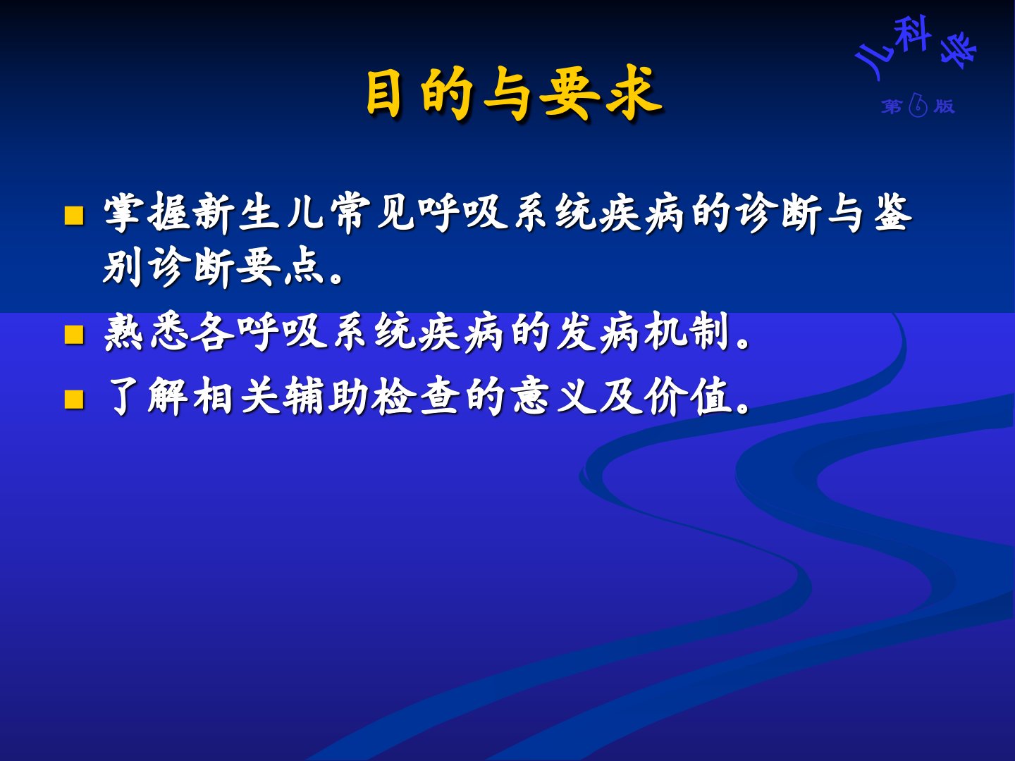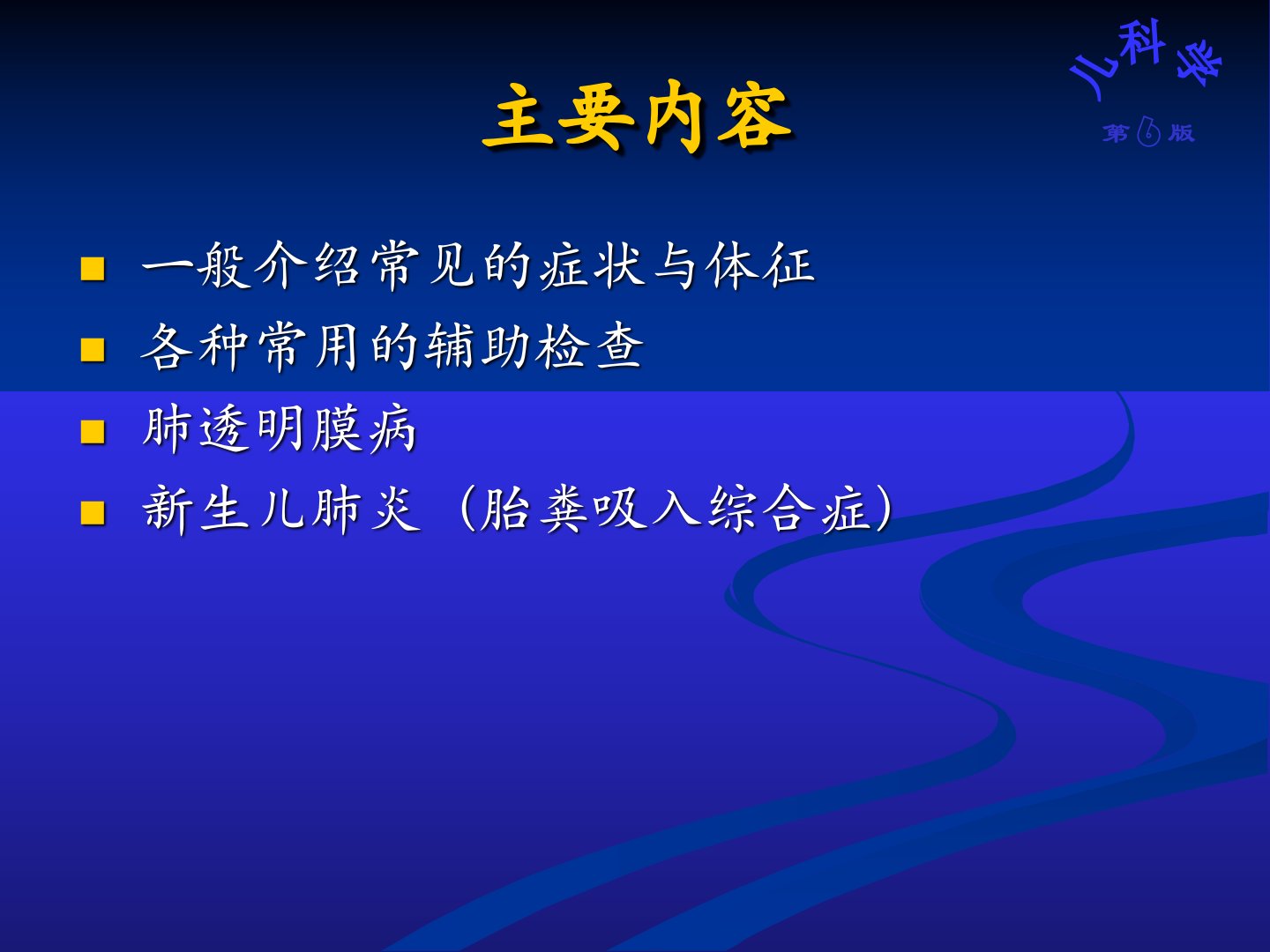 新生儿呼吸系统疾病中常见症状包括呼吸困难、呼吸急促、呼吸暂停、口吐白沫、呻吟等体征有紫绀、鼻扇、三凹征。肺透明膜病(HMD)又称新生儿呼吸窘迫综合症(NRDS)发病率与胎龄呈反比根本原因是肺泡表面活性物质(PS)缺乏导致肺泡萎陷表现为进行性加重的呼吸窘迫胸片可见双肺透过度降低等特征性改变。治疗包括维持生命体征稳定、保证通气功能、防止并发症具体措施有氧疗、辅助通气、PS替代疗法等。预防方面强调早产预防、加强高危妊娠监护以及对欲行剖宫产或提前分娩者判定胎儿大小和胎肺成熟度对孕2434周需提前分娩或有早产迹象的胎儿出生48小时前给孕母肌注地塞米松或倍他米松以促进胎肺成熟。新生儿肺炎包括产前、产时、产后感染性肺炎及胎粪吸入综合症(MAS)等MAS表现为宫内窒息后喘息性呼吸血气分析示严重低氧血症和高碳酸血症治疗包括氧疗、机械通气等。