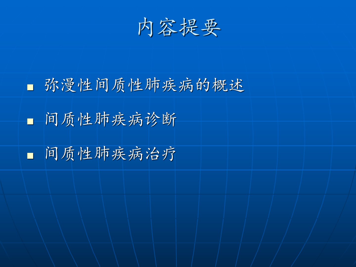 弥漫性间质性肺疾病(ILD)是以肺泡壁为主包括肺泡周围组织及其支撑结构病变的一组非肿瘤、非感染性疾病。其临床特点为活动性呼吸困难、干咳影像学可见两肺弥漫阴影肺功能呈现限制性通气障碍和弥散功能降低最终可能发展为弥漫性肺间质纤维化、蜂窝肺导致呼吸衰竭。ILD病因复杂包括吸入无机有机粉尘、气体、气溶胶、烟雾、蒸气放射性损伤毒物接触感染性因素药物性因素等。诊断需结合临床、影像学和病理学即CRP诊断系统。治疗方面特发性肺间质纤维化(IPF)等类型可采用激素、免疫抑制剂等药物肺移植为终末期选择同时需根据疗效调整治疗方案。此外还介绍了非特异性间质性肺炎、脱屑性间质性肺炎等其他ILD类型的特点与治疗以及结节病、外源性过敏性肺泡炎、药物性肺部疾病等相关疾病的概述、病因、临床表现、诊断和治疗。