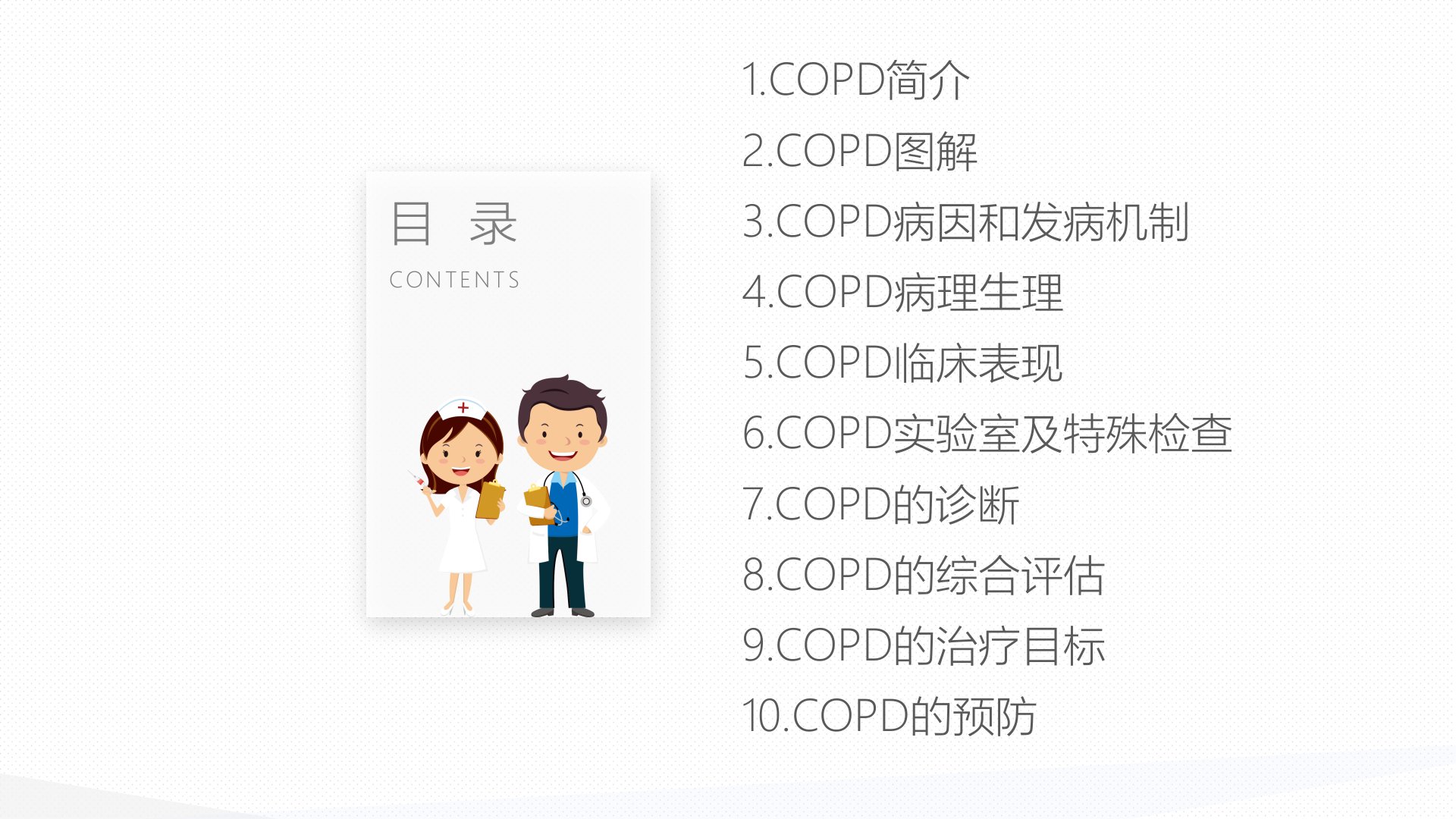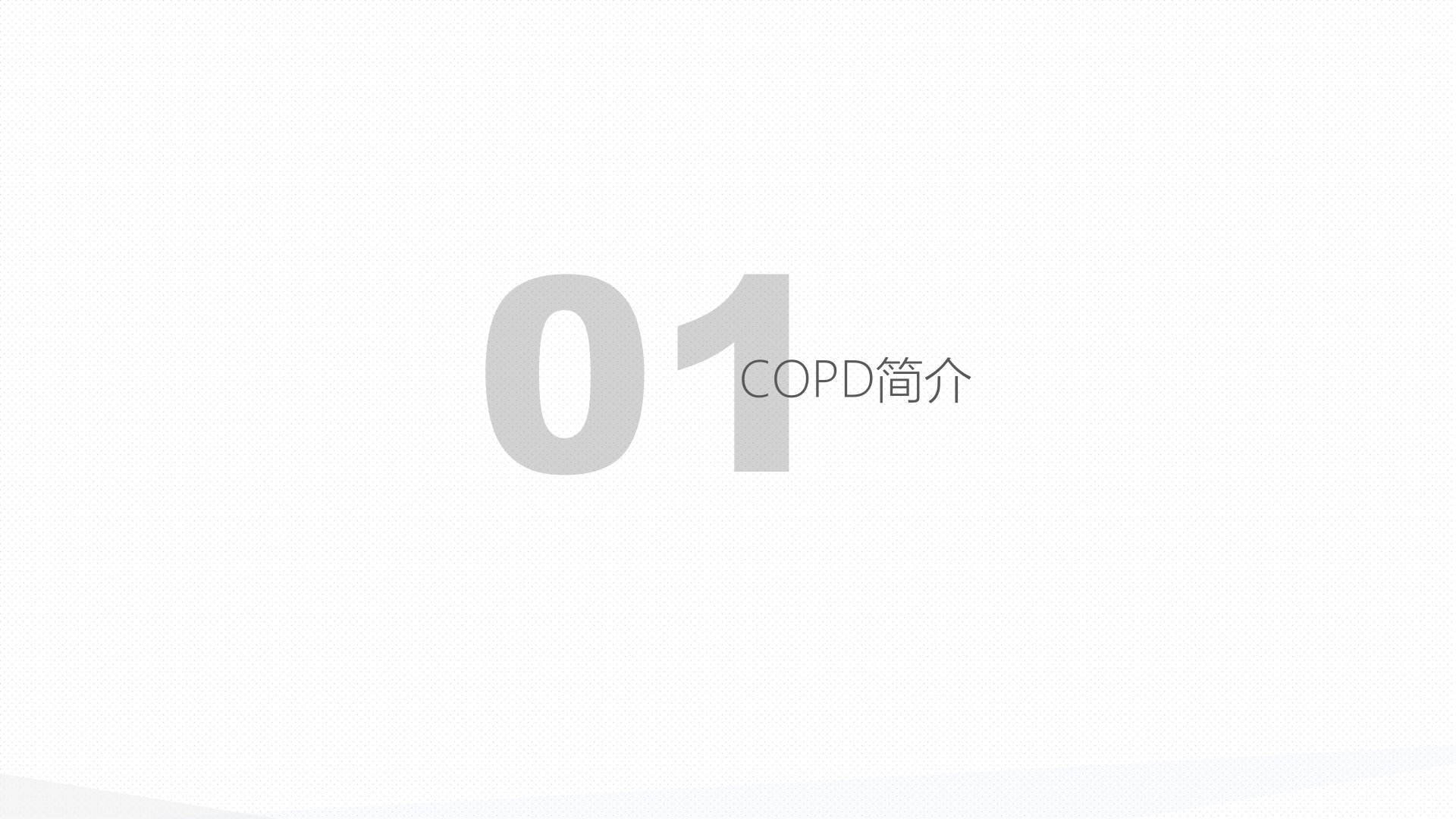 慢性阻塞性肺疾病ChronicObstructivePulmonaryDisease(COPD)COPD简介COPD图解COPD病因和发病机制COPD病理生理COPD临床表现COPD实验室及特殊检查COPD的诊断COPD的综合评估COPD的治疗目标COPD的预防目录CONTENTS01COPD简介COPD简介COPD是美国第4位的疾病死亡原因(排在之前的是心脏病、癌症和心脑疾病),与艾滋病一起名列第四大死亡原因。心脑血管疾病死亡率下降,COPD则上升COPD是一种高发病率、高致死率、高经济负担的疾病。1990年,COPD在疾病负担的支出方面排位第12,到2020年则将升至第5位,并成为第3大死...