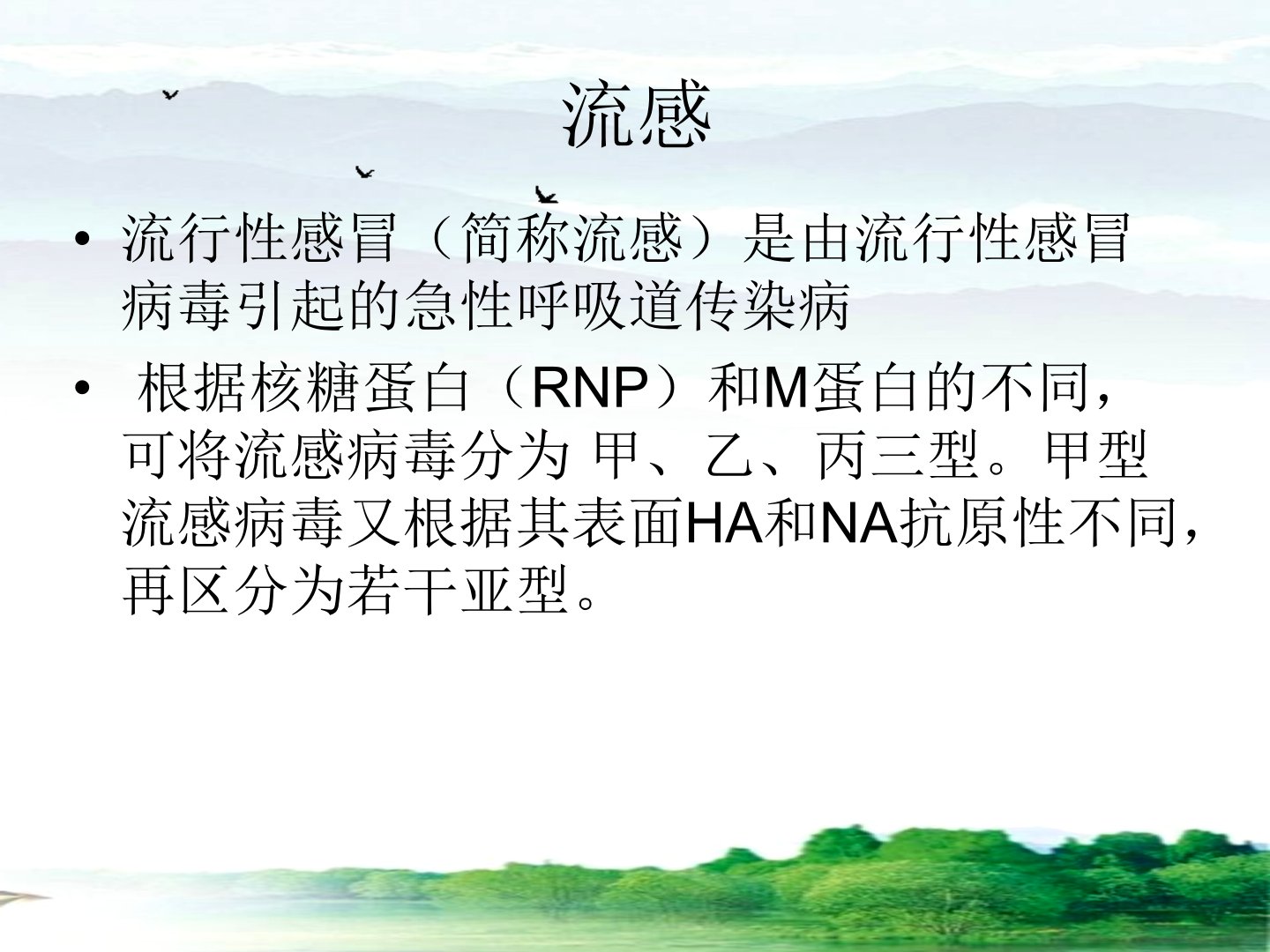 流感由流感病毒引发病毒分甲、乙、丙三型甲型又根据表面抗原不同分若干亚型。流感样病例(ILI)指发热伴咳嗽或咽痛且缺乏其他实验室诊断依据的情况。流感病毒、副流感病毒、呼吸道合胞病毒等多种病毒及非典型病原体都可能与ILI有关。多项研究分析了ILI与流感病毒感染的关系不同年龄组敏感性不同65岁组敏感性最高04岁组最低且大流行比局部流行敏感性高。临床症状中咳嗽、体温39、38539、疲乏等对预测流感病毒感染有价值其中体温39及咳嗽对所有年龄组均有预测价值。流感病毒实验室检查包括病毒分离、抗原、核酸和抗体检测。病毒分离培养是“金标准”但胶体金快速检测试剂盒敏感性低不宜单独用于诊断RTPCR技术是可靠快速诊断方法。抗流感病毒治疗有相应原则成人应在发病48小时内给药婴幼儿等特殊人群也有推荐治疗方式。