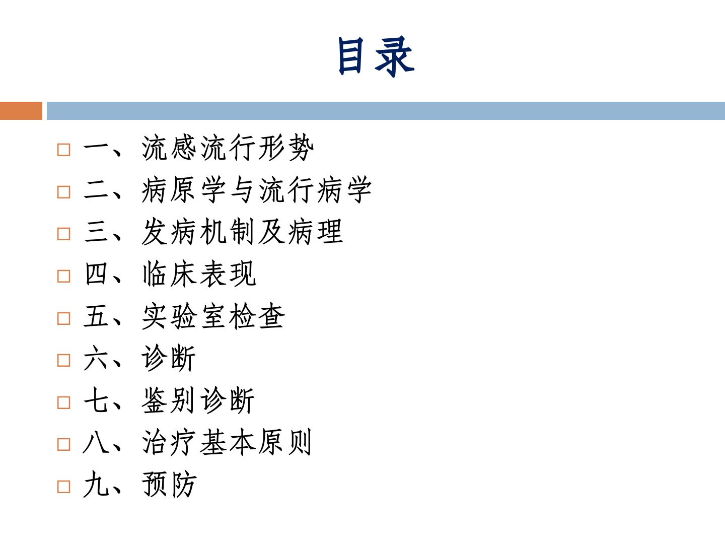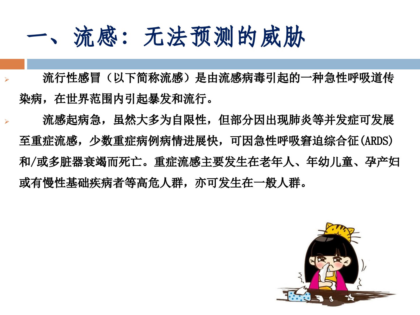 《流行性感冒诊疗方案(2018年版)》摘要2017年入冬以来我国南北方省份流感活动水平上升快处于冬季流行高峰强度强于往年但流行病毒未发现影响传播力等的变异。流感由流感病毒引起病原分甲、乙、丙、丁四型甲型和乙型是感染人的主要类型。流感主要通过飞沫传播人群普遍易感。其发病机制是病毒结合细胞启动感染大量复制后扩散可诱发细胞因子风暴。病理改变主要是呼吸道相关病理变化重症肺炎可发生弥漫性肺泡损害等。临床表现上潜伏期17天多为24天有流感样症状甲型病情较乙型重多数病例预后良好但儿童、老年人、妊娠妇女等高危人群易发展为重症病例。诊断结合流行病学史、临床表现和病原学检查。需与其他上呼吸道感染、下呼吸道感染等鉴别。治疗基本原则包括尽早隔离治疗明确住院标准高危人群尽早抗病毒治疗避免盲目用抗菌药物等。抗病毒药物有神经氨酸酶抑制剂等。中医治疗分轻症、重症、恢复期辨证施治。预防方面疫苗接种是最有效手段推荐高危人群优先接种;药物预防不能代替疫苗接种仅作紧急临时预防;同时要保持良好个人卫生习惯。