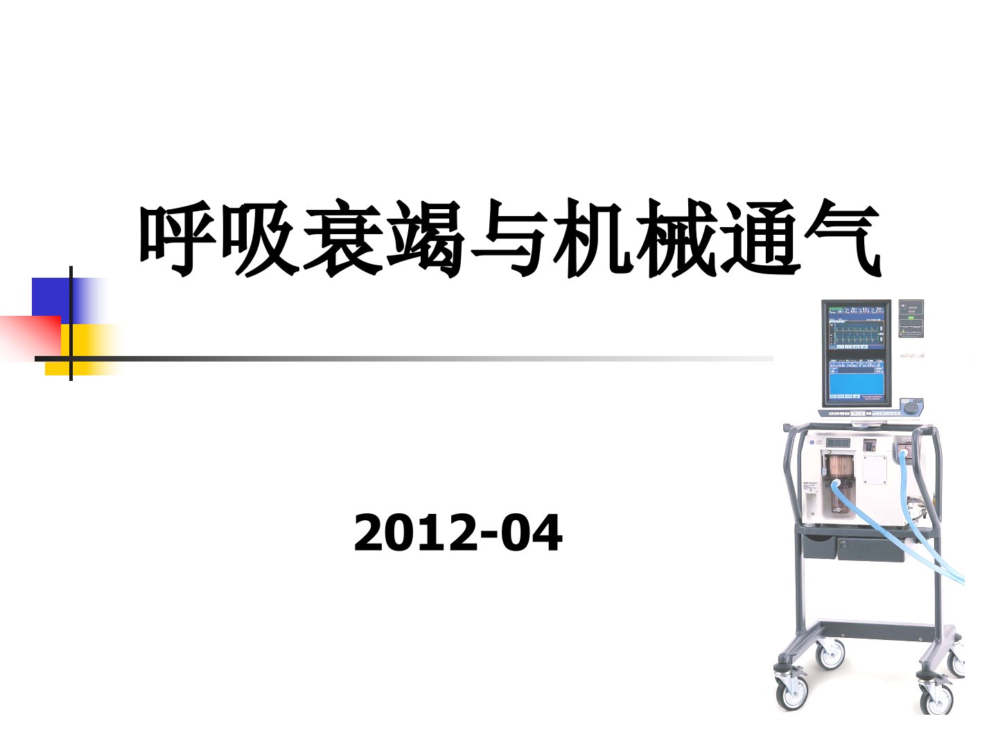 呼吸衰竭与机械通气2012-04CONTENTS简要复习呼吸衰竭机械通气概述机械通气基本工作原理呼吸机主要参数设置无创正压通气常用通气模式介绍PEEP机械通气的监测撤机问题机械通气对生理功能的影响及并发症机械通气的简要操作流程病例实战呼吸衰竭respiratoryfailure定义:各种原因造成肺通气和或换气障碍,以致在静息条件下亦不能维持足够的气体交换,导致低氧血症伴或不伴高碳酸血症,进而引起一系列病理生理学改变和相应临床表现的综合征。外呼吸过程呼吸衰竭-诊断条件(海平面、静息状态、呼吸空气)ABG:PaO2<60mmHg或伴PaCO2>50mmHg,同时排除心内解剖分流和原发性心排出量降低...