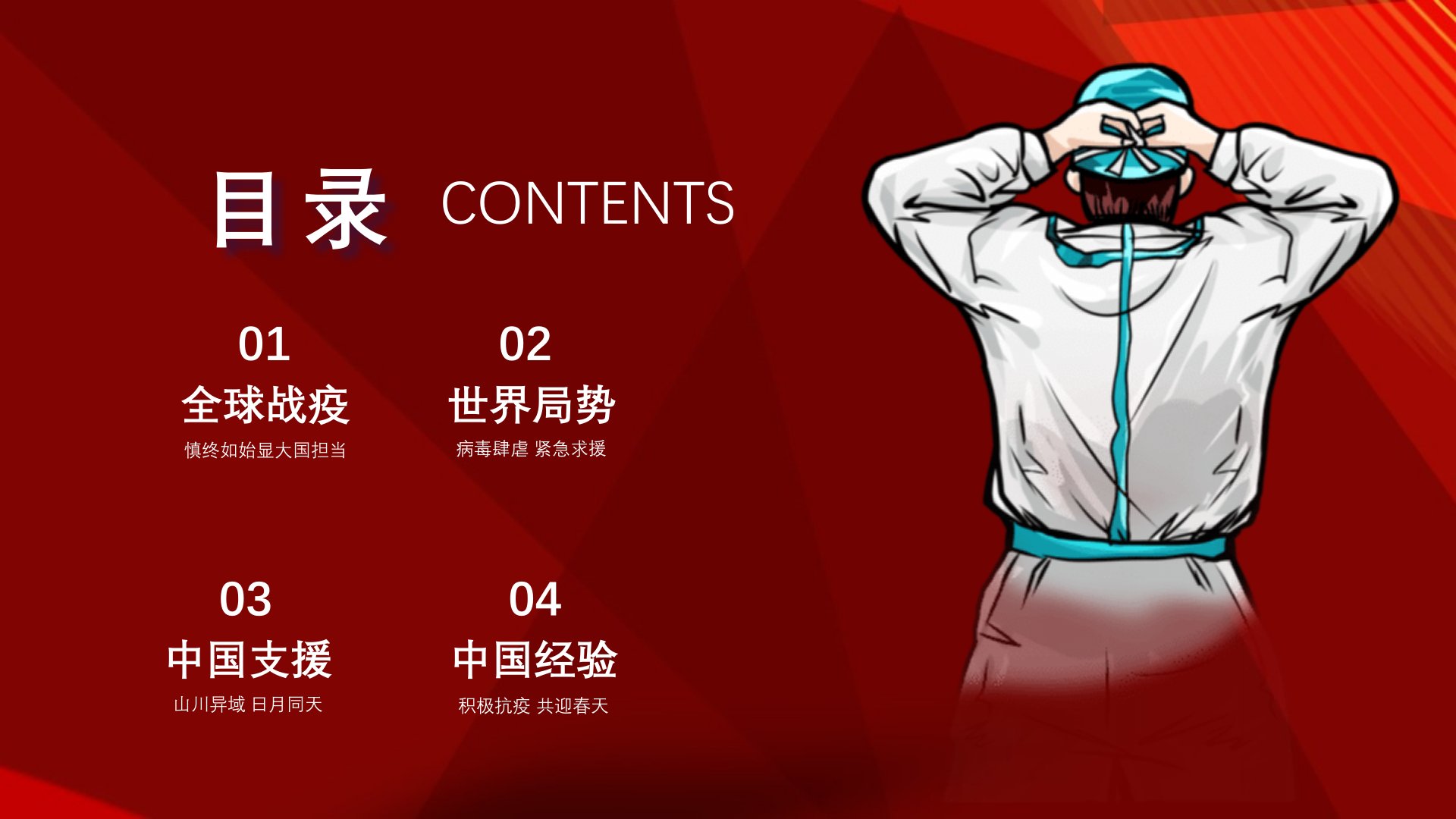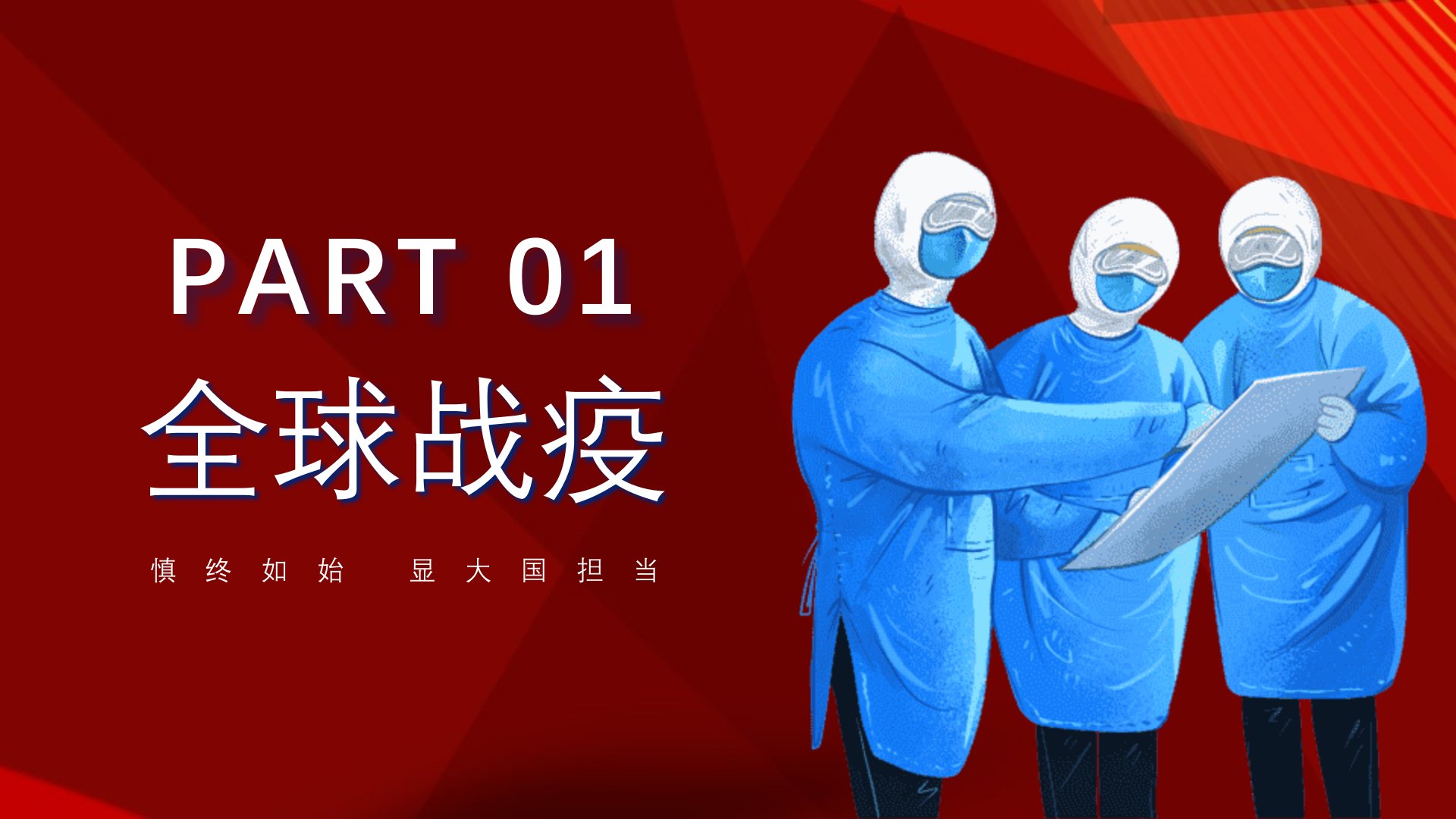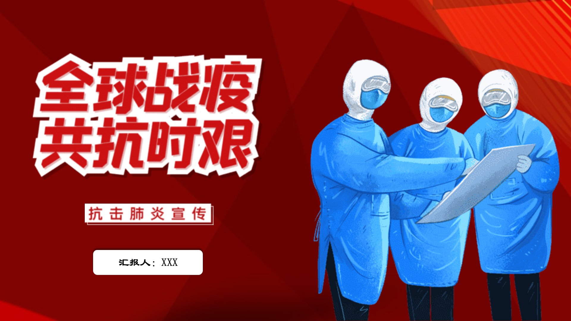 红色大气全球战疫共抗时艰抗击肺炎宣传PPT【25页】