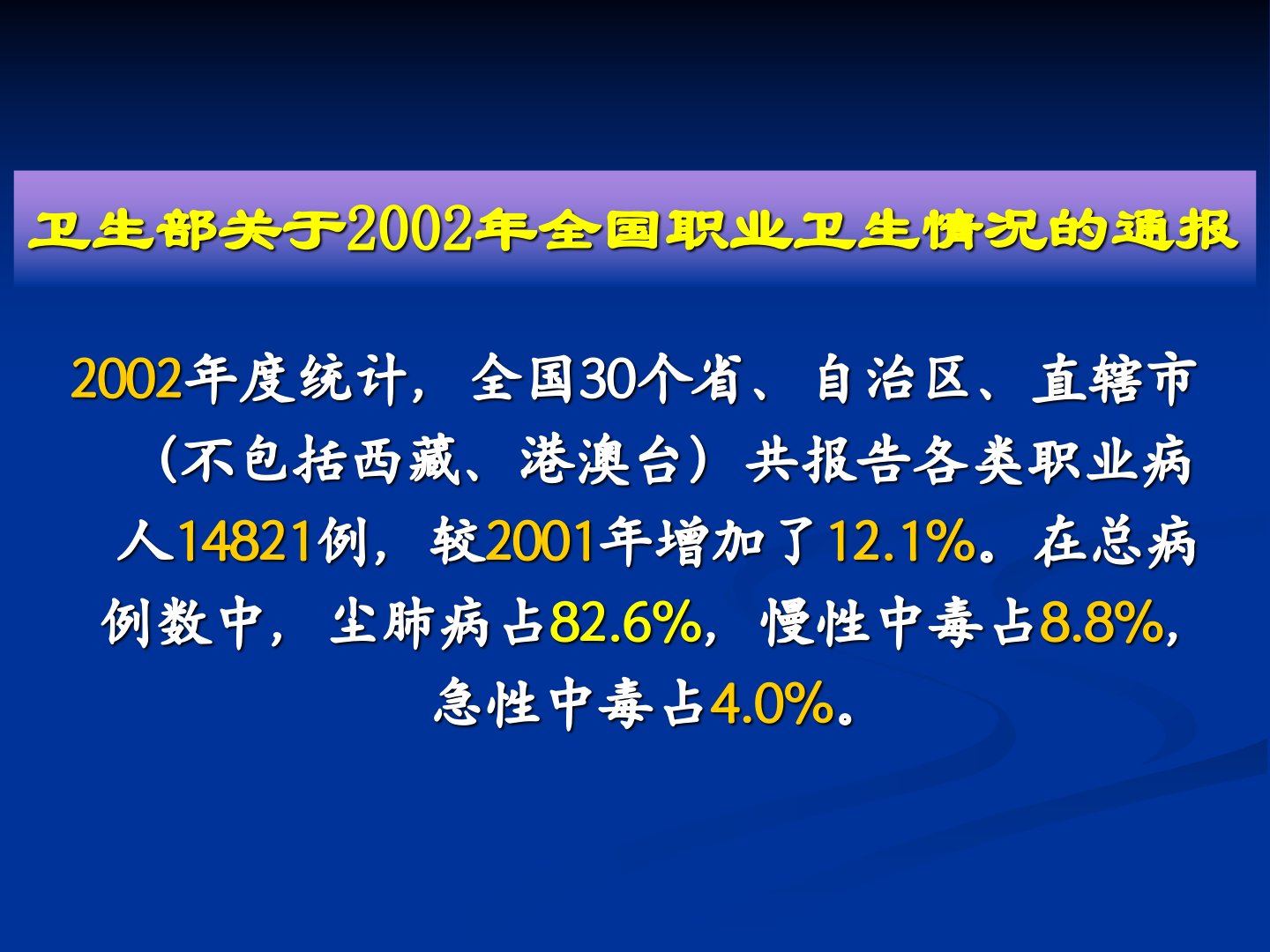 摘要2002年度全国职业卫生情况通报显示职业病人中尘肺病占826。粉尘是生产中形成的能较长时间漂浮在空气中的固体微粒来源包括矿山开采、水泥陶瓷生产、皮毛纺织业等可分为无机粉尘、有机粉尘和混合性粉尘三类。粉尘的理化特性如化学成分、浓度、分散度等直接决定其对人体的危害性质和程度。其中游离二氧化硅粉尘可致矽肺有毒金属粉尘可致中毒。粉尘浓度越高、暴露时间越长危害越重。粉尘分散度越高在空气中漂浮时间越长被人体吸入机会越多危害也越大。粉尘危害的控制包括法律、技术和卫生保健措施。矽肺是由于长期吸入游离二氧化硅含量较高的粉尘而引起的肺组织纤维化疾病其发病与粉尘性质、浓度、接尘时间等因素有关。矽肺病理改变包括结节型、弥漫性间质纤维化型等临床表现有症状、体征和X线胸片表现并可能并发肺结核等疾病。矽肺患者需调离接尘岗位并依据尘肺分期等进行劳动能力鉴定。