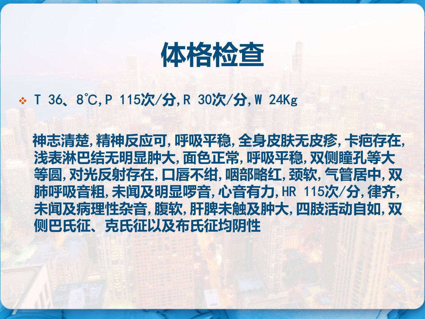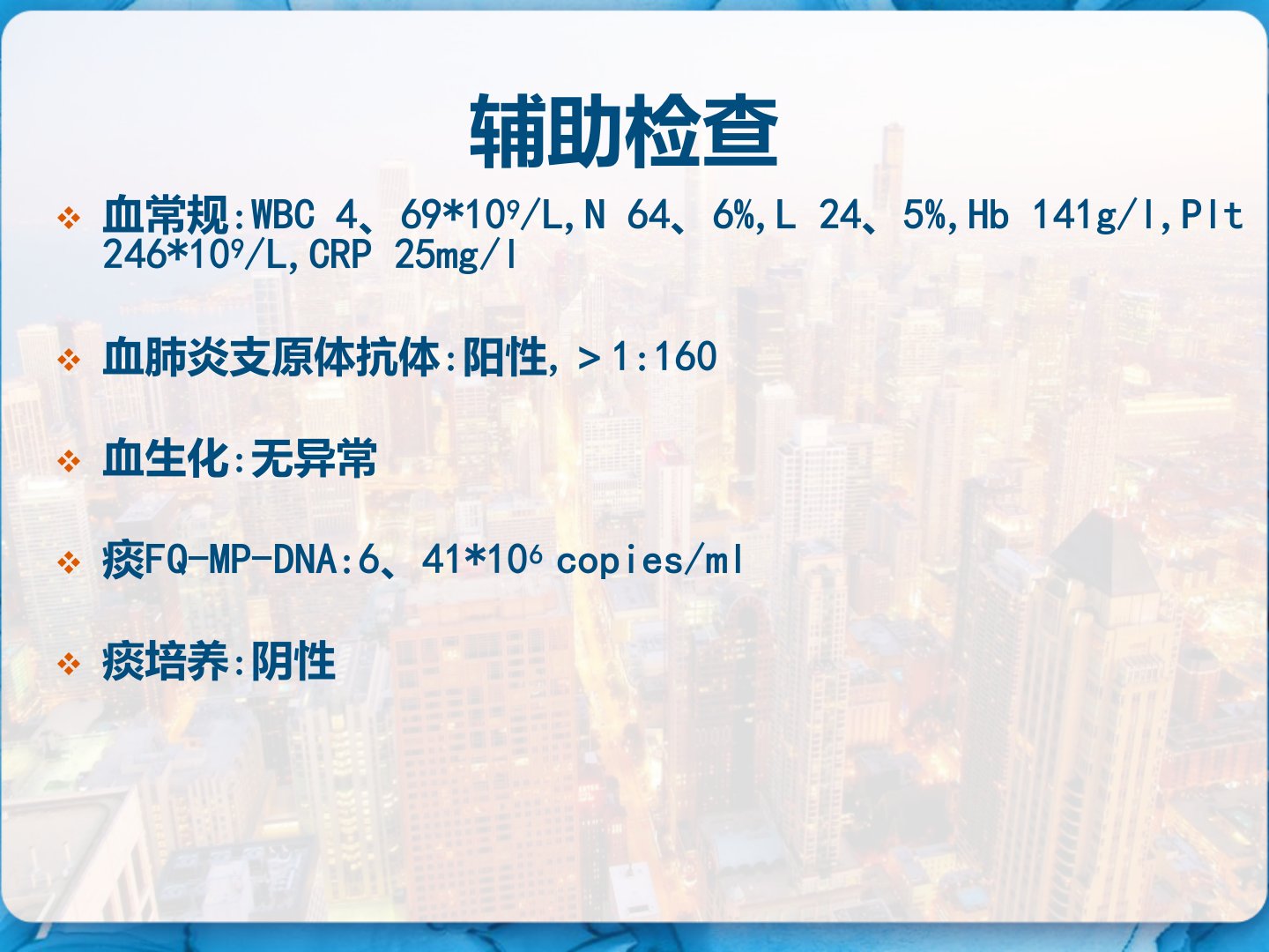 患儿体格检查显示神志清楚呼吸平稳全身皮肤无皮疹双肺呼吸音粗但未闻及明显啰音心音有力律齐辅助检查显示血肺炎支原体抗体阳性痰FQMPDNA高胸片及CT有相应表现外院治疗热峰未降、咳嗽加重我院治疗2天后体温正常诊断为肺炎支原体肺炎。肺炎支原体(MP)是介于细菌与病毒间的微生物无细胞壁等结构是引起儿童与青壮年呼吸道感染的常见原因近年来发病率显著增高约占小儿呼吸道感染的30通过飞沫传播潜伏期即有传染性。MP进入下呼吸道后黏附在气道上皮细胞表面破坏黏膜上皮肺炎是患者对支原体及其代谢产物的过敏反应。临床表现上患者多有发热、咳嗽等症状肺部体征少。问题1该患儿资料未提及肺外表现;问题2需与结核、病毒、细菌等病原学方面疾病传染性单核细胞增多症等相关临床症状或肺外表现方面疾病以及支气管异物等影像学方面疾病鉴别;问题3关于该患儿病程中使用糖皮质激素治疗是否合适未明确说明。