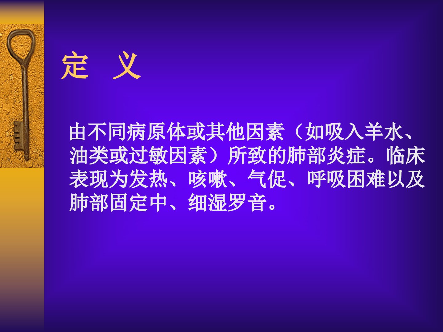 肺炎由不同病原体或其他因素所致临床表现为发热、咳嗽、气促、呼吸困难及肺部固定中、细湿啰音。支气管肺炎最多见且常与间质性肺炎并存。肺炎按病因可分为感染性(病毒性、细菌性、支原体、衣原体、原虫性、真菌性)和非感染性。病变可致呼吸功能不全引发循环系统、神经系统、消化系统改变。实验室检查包括外周血、病原学检查等。X线检查可见肺纹理增强、点状或小片絮状阴影。治疗包括支持疗法(一般支持、护理、镇静、退热、祛痰止咳平喘、通气支持、营养、液体、免疫支持)、激素治疗及病原治疗(抗生素、抗病毒)。并发症、并存症需及时处理预防包括加强营养、保持空气清新、锻炼身体、预防感冒。思考题涉及婴幼儿肺炎病理生理改变、呼吸衰竭诊断依据、脓胸病原菌、肺炎合并心衰治疗、重症肺炎特点、治疗调整及并发症判断。