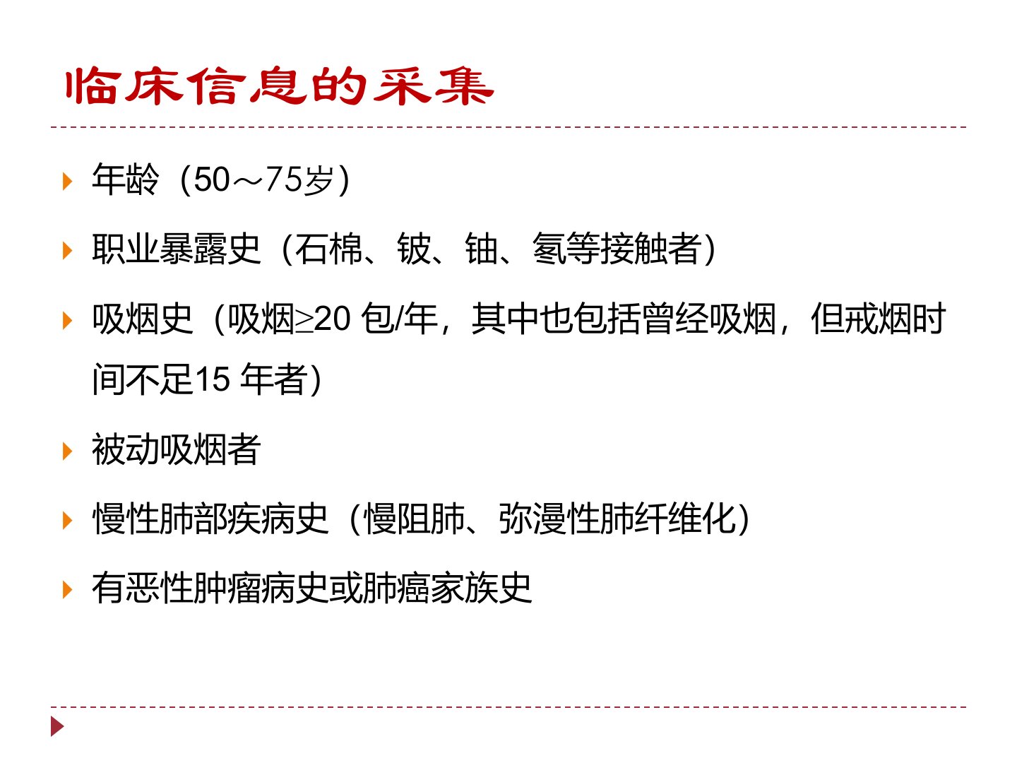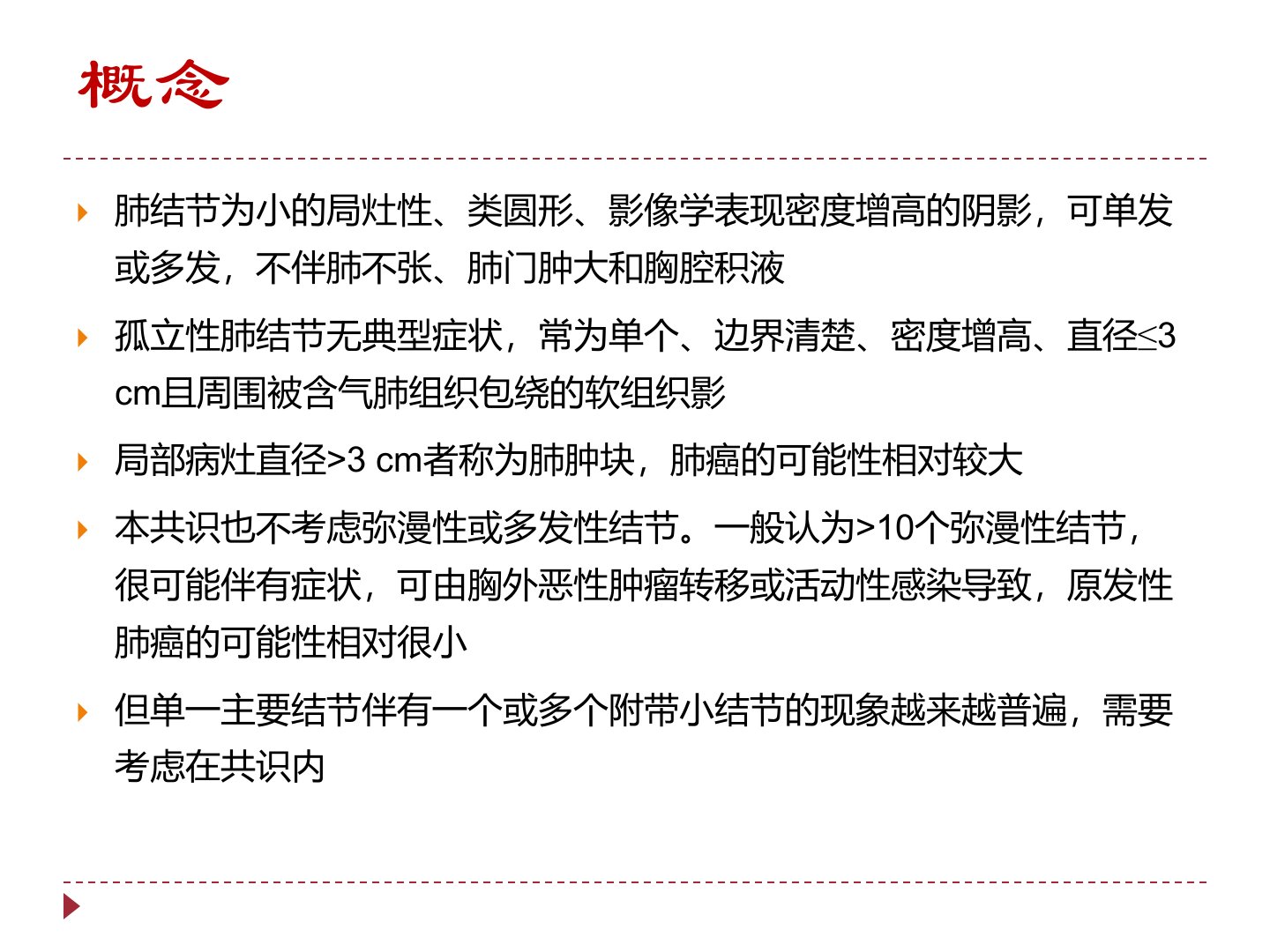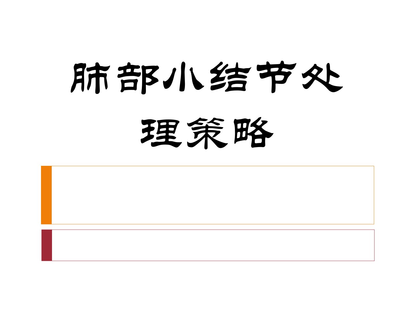 肺部小结节处理策略摘要肺结节为局灶性、类圆形、密度增高的阴影可单发或多发孤立性肺结节常无典型症状。临床信息采集包括年龄、职业暴露史、吸烟史等。CT检查参数有特定要求低剂量CT筛查可用于发现肺癌一些肿瘤标志物可辅助肺癌诊断、治疗监测和预后判断。对于830mm实性结节有多种评估影响因素。非实性纯磨玻璃结节CT随访用薄层平扫增大或实性成分增加预示恶性转化。结节直径不同处理策略不同如直径10mm且患者不愿或无法活检手术3个月后早期随访;有危及生命合并症且结节低度恶性可限定或减少随访。部分实性结节增大或实性成分增多提示恶性。结节直径8mm的部分实性结节3个月复查CT持续存在则用PET、非手术活检或手术切除评估。小结节处理有危险分层BTS指南、NCCN指南等有不同推荐中国肺结节随访共识也有相应策略。此外还介绍了ADC新分类中结节的定义、CT表现及病理特征等内容。
