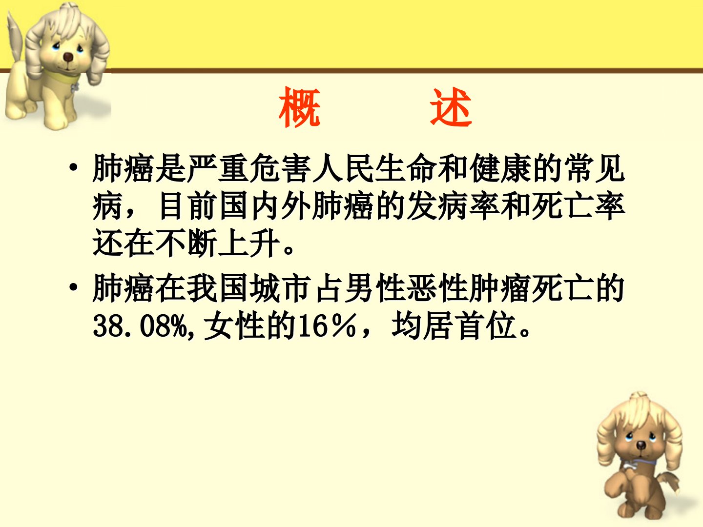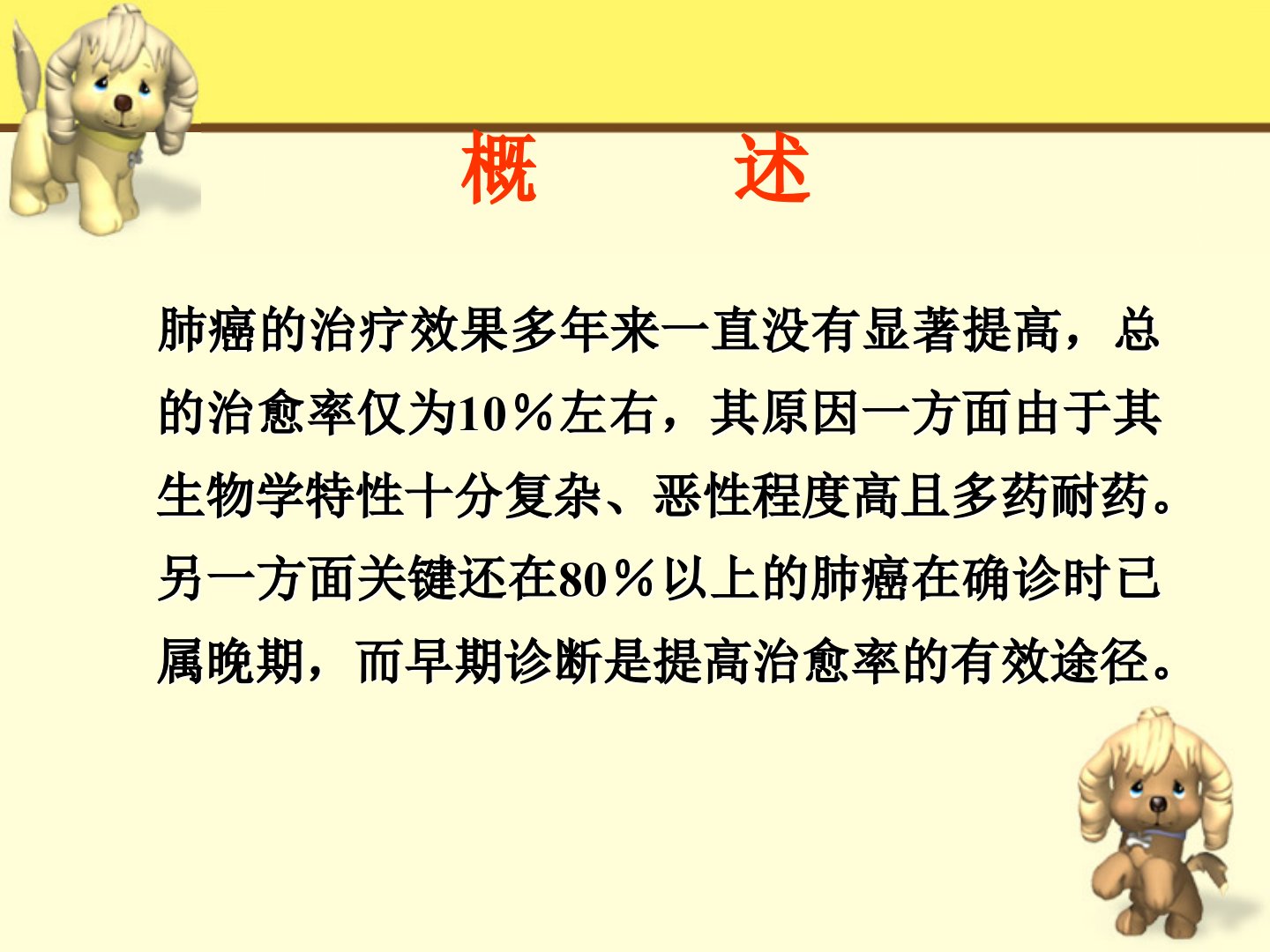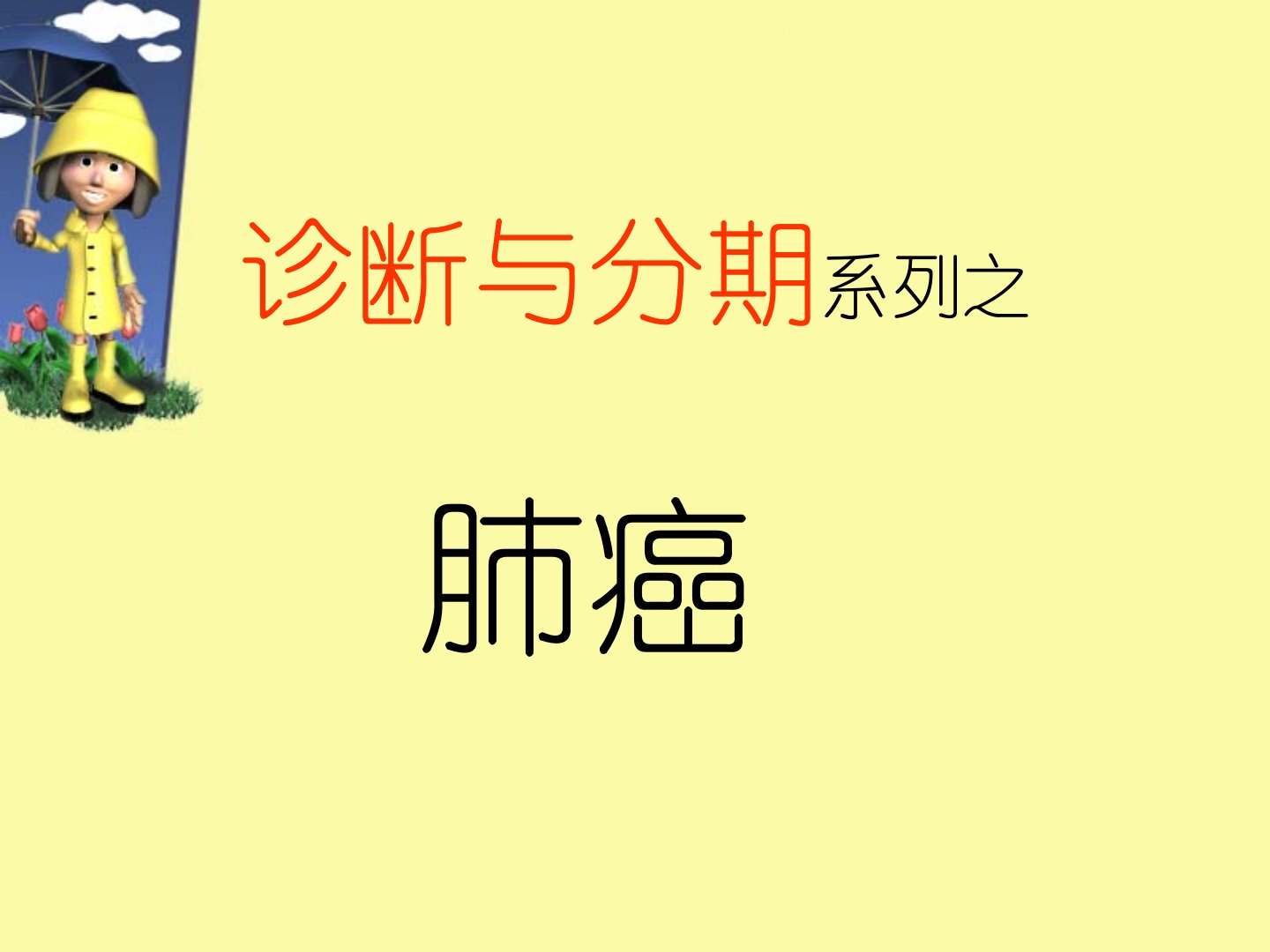 诊断与分期系列之肺癌概述肺癌是严重危害人民生命和健康的常见病,目前国内外肺癌的发病率和死亡率还在不断上升。肺癌在我国城市占男性恶性肿瘤死亡的38.08%,女性的16%,均居首位。概述肺癌的治疗效果多年来一直没有显著提高,总的治愈率仅为10%左右,其原因一方面由于其生物学特性十分复杂、恶性程度高且多药耐药。另一方面关键还在80%以上的肺癌在确诊时已属晚期,而早期诊断是提高治愈率的有效途径。诊断原则警惕经治未愈的呼吸道症状注意少见的肺外表现从常规到复杂,从无创到有创重视获取病理学诊断细胞学,组织学早期诊断国内外有关研究人员对肺癌的早期诊断、多学科治疗及预后等进行了深入研究,取得了不菲的成绩。:1、...