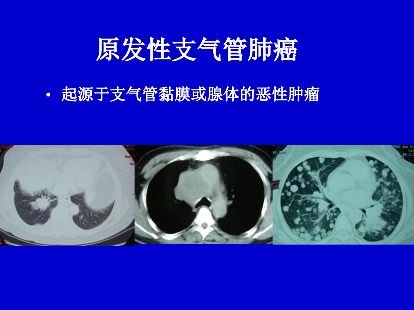 原发性支气管肺癌是源于支气管黏膜或腺体的恶性肿瘤。其病因和发病机理中吸烟是主要因素85的肺癌患者有主动吸烟史吸烟者肺癌死亡率是不吸烟者的1013倍。其他因素包括空气污染、职业致癌因子、电离辐射、饮食和营养、遗传因素等。病理分类上肺癌分为恶性上皮肿瘤包括鳞状细胞癌、小细胞癌、腺癌、大细胞癌等各有其特点。临床表现上肺癌可引起原发肿瘤症状、局部扩展症状、远处转移症状及肺外表现。诊断上包括胸部X线、CT、MRI、PETCT等影像学检查以及痰脱落细胞学、支气管镜病理学检查等。诊断步骤包括发现问题、取得病理标本、病理学诊断和分期诊断。预后与分期、性别、ECOG评分、体重下降、治疗效果相关。SCLC分期包括局限期和广泛期预后各有差异。